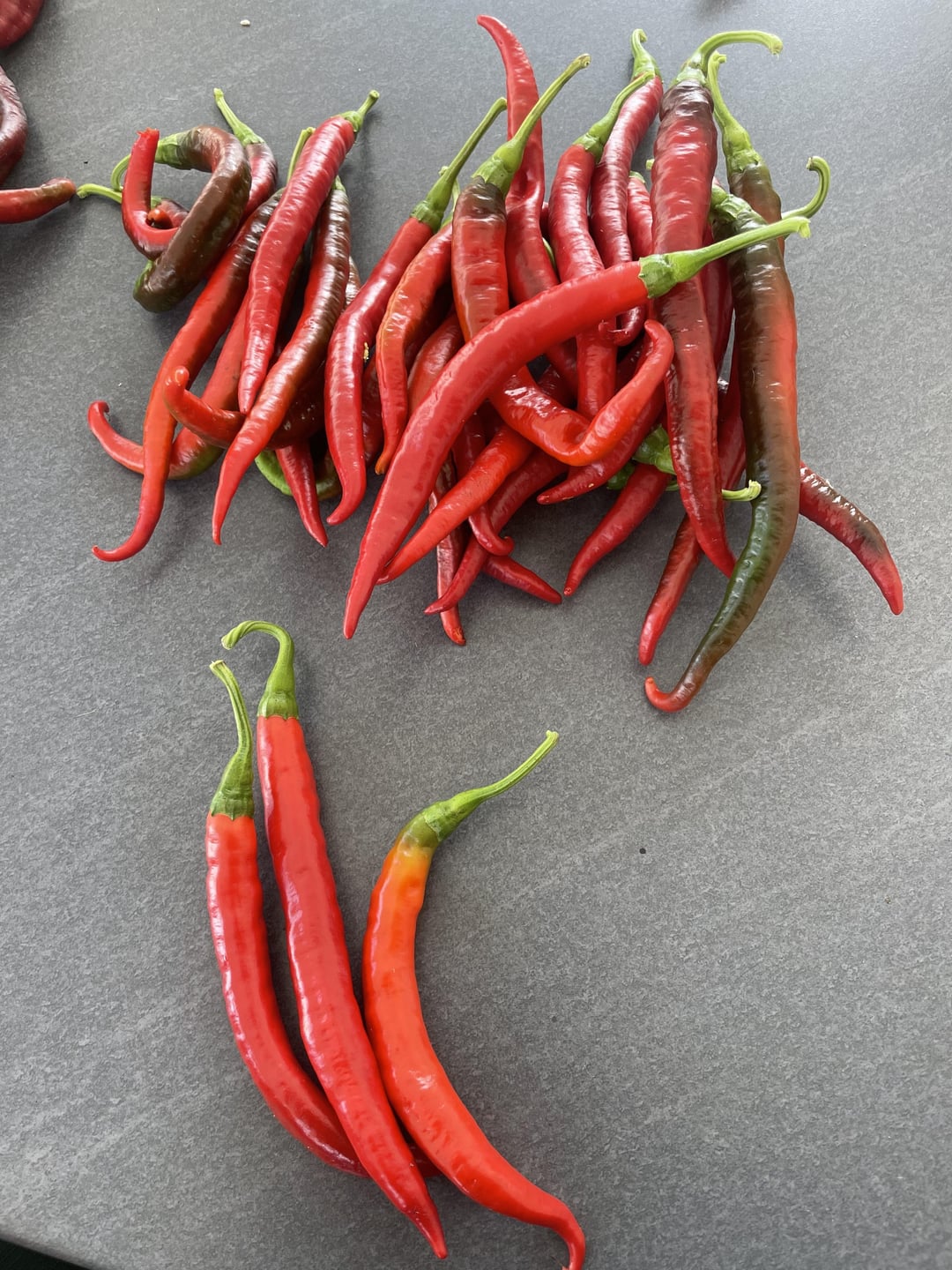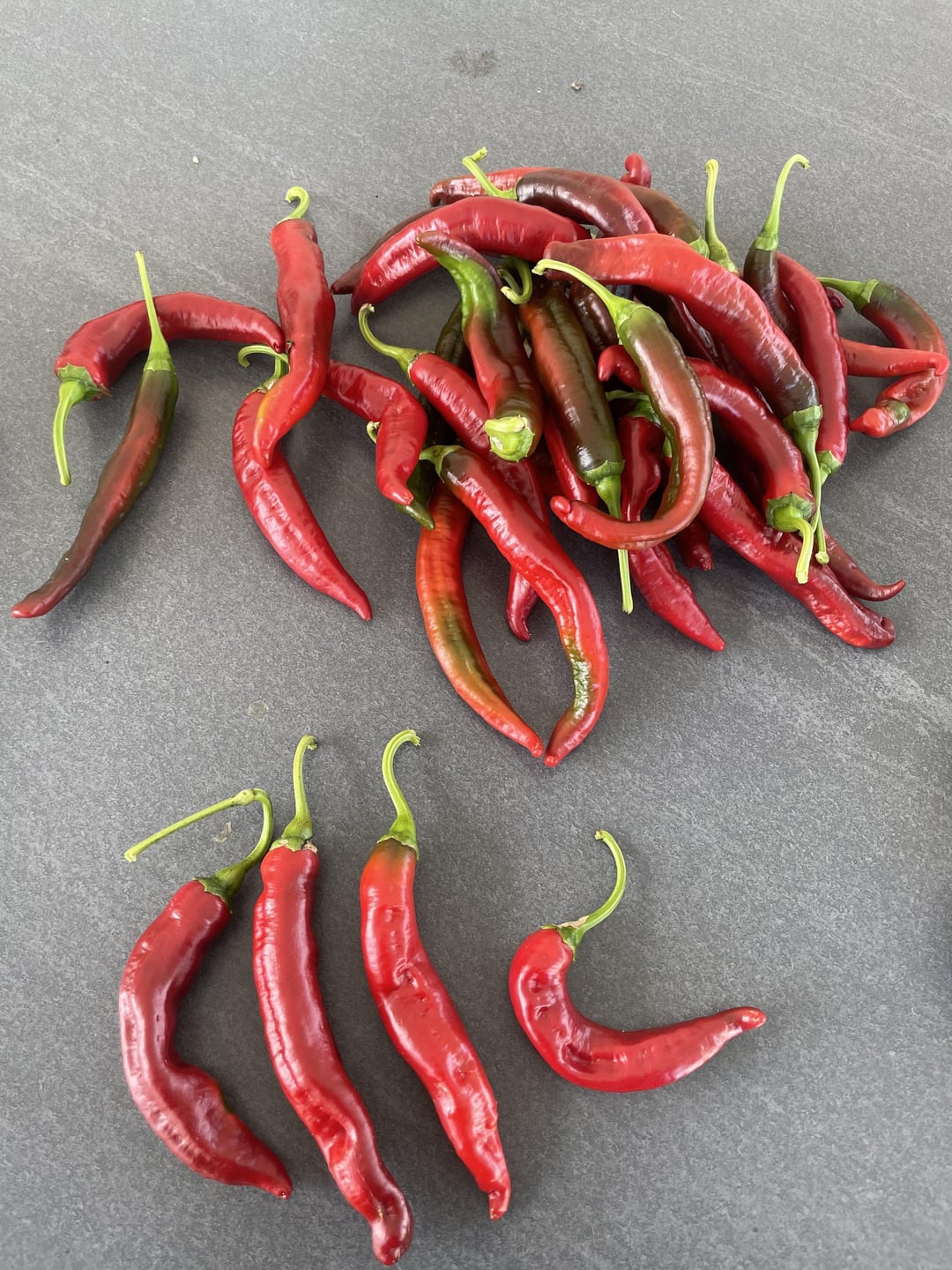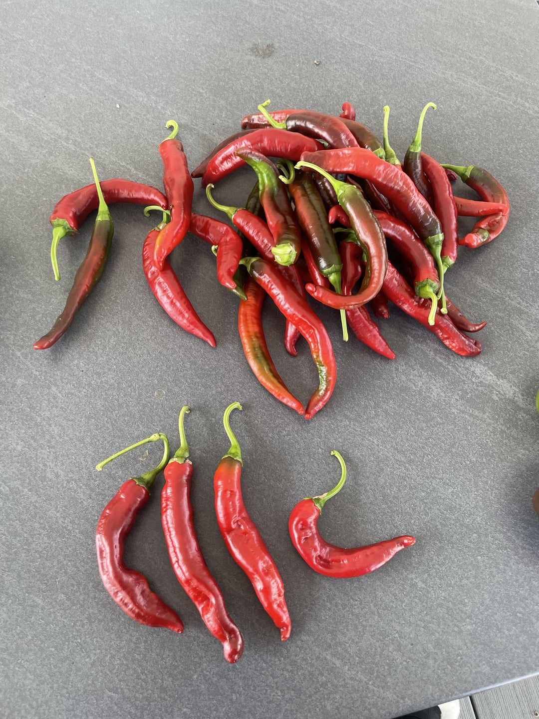 Any idea what might have happened here? Cross pollination potentially? Some of the pepper do resemble Pepperoncini peppers to a certain extent but I feel like most are to long to be Pepperoncini peppers. All the fruit you see in the pictures were from the same seed packet. I have 3 plants. 1 of them resembles Pepperoncini and the other looks more like a long skinny red pepper. Also my main issue is the taste is just weird. No spice at all and realistically eating them “green” was definitely not possible because of how bad the taste was…even now they are a little sweet but pretty bland overall and not very enjoyable fresh at least. Any ideas what I can do with them?