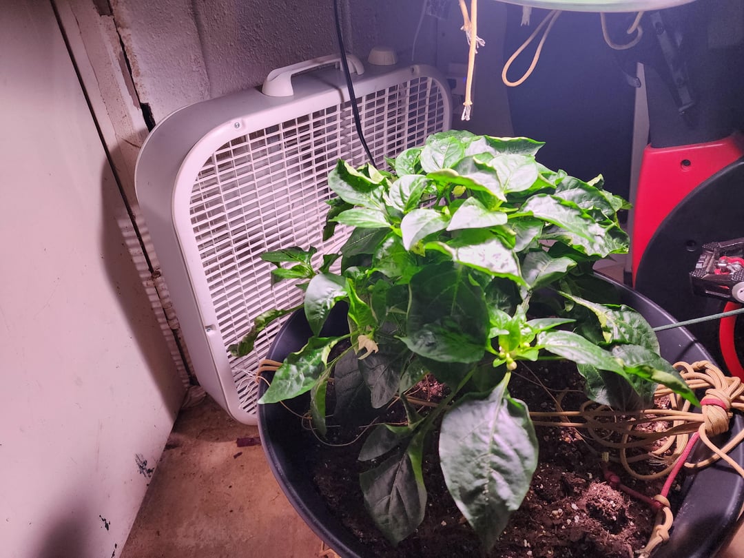 I've been growing a miniature red bell pepper in my basement for a bit. There is a fan constantly running right next to it.