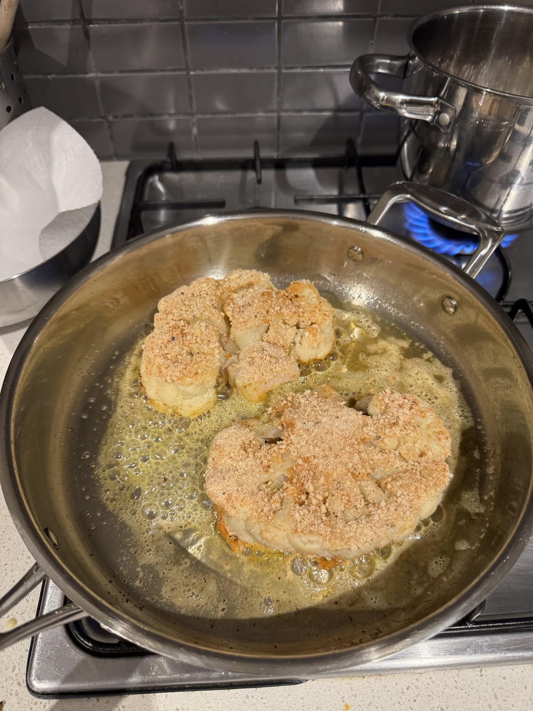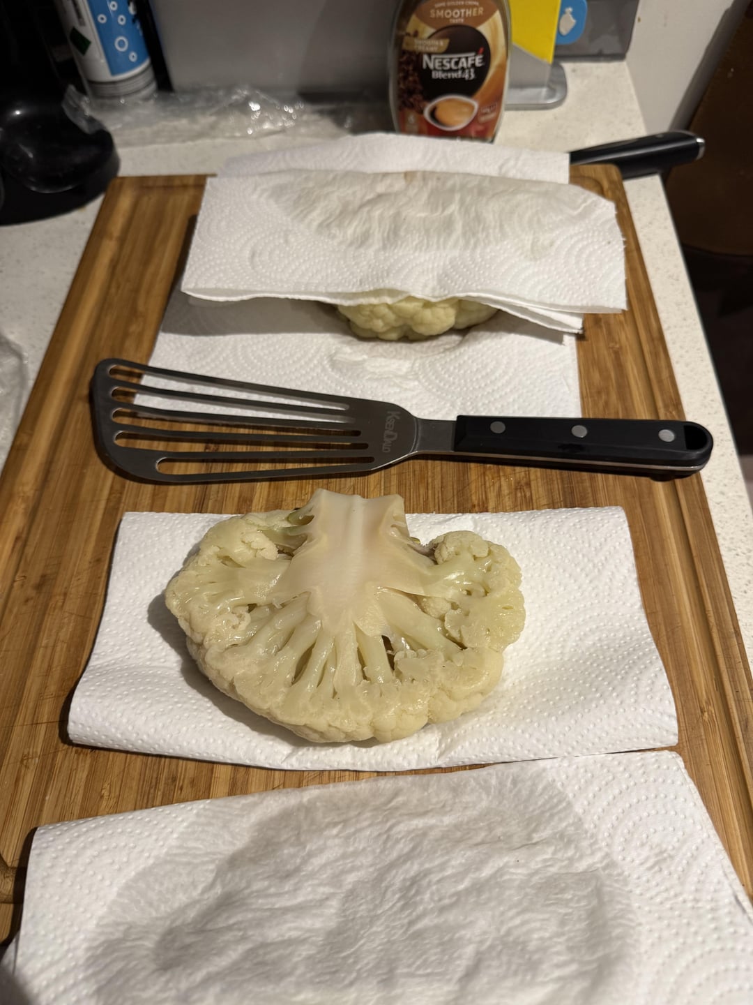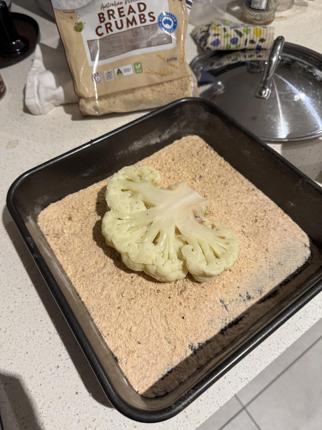 Tried making the cauliflower steak receipe from Anova: https://recipes.anovaculinary.com/recipe/sous-vide-cauliflower-steaks.