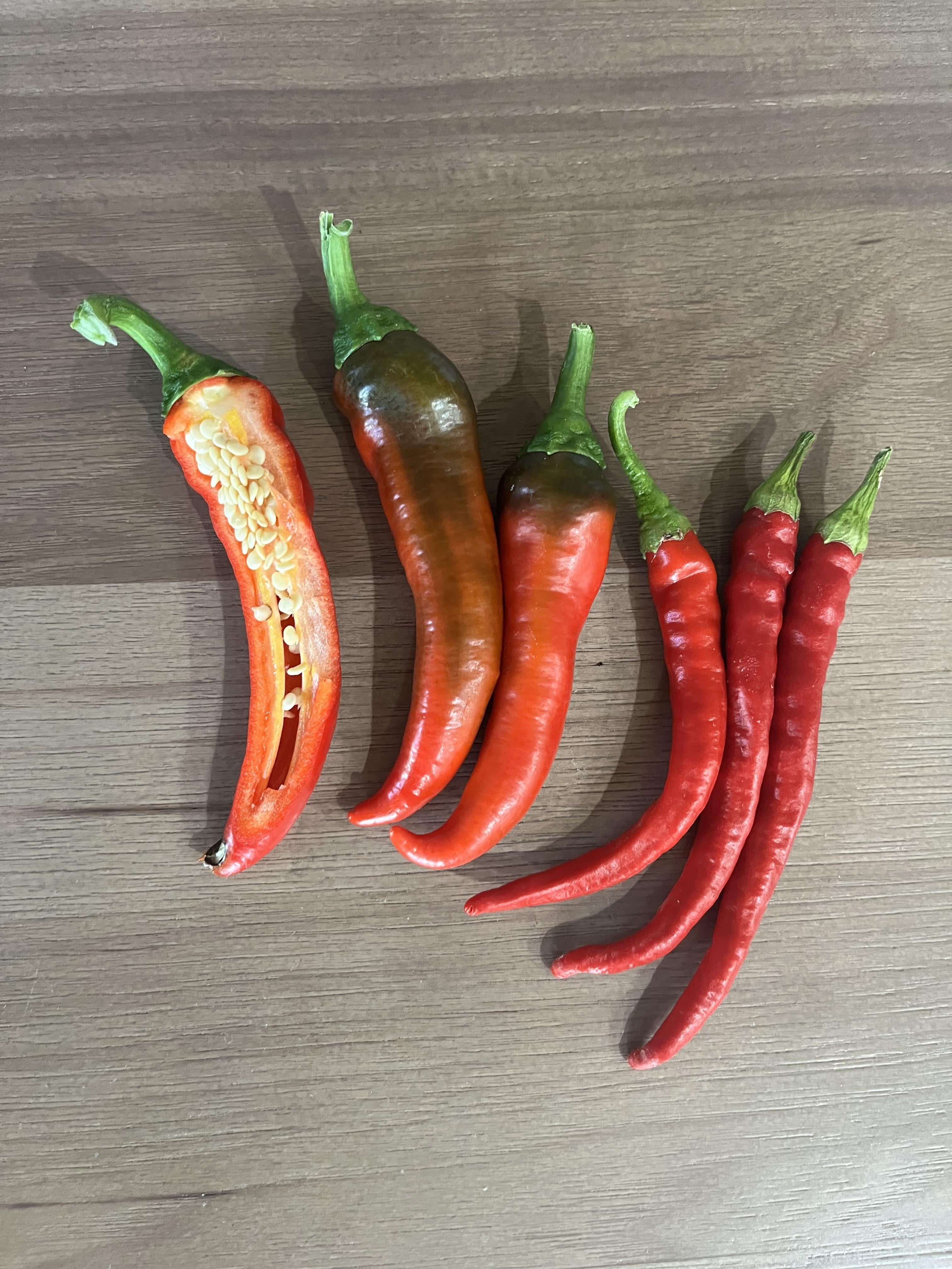 I always plant multiple varieties of peppers in the same bed. I harvested some Cayenne seeds last year and one of the plants produced what looks like a hybrid Anaheim/Cayenne (3 on the left).