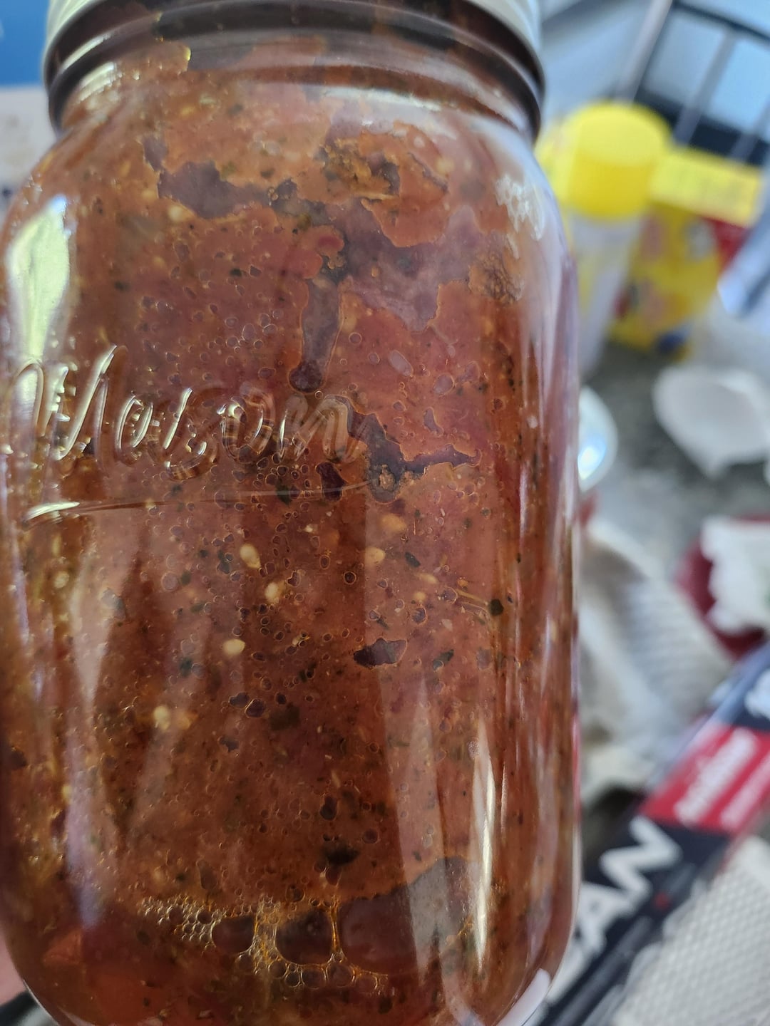 I’m a little more concerned about the bubbles than the air itself – I’ve never had a tomato sauce bubble like that when it’s cooled.