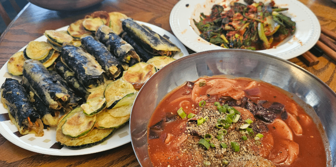 My first time making kim mari. The hobak and kim mari are leftovers, so I made tteokbokki and love dipping in the sauce.