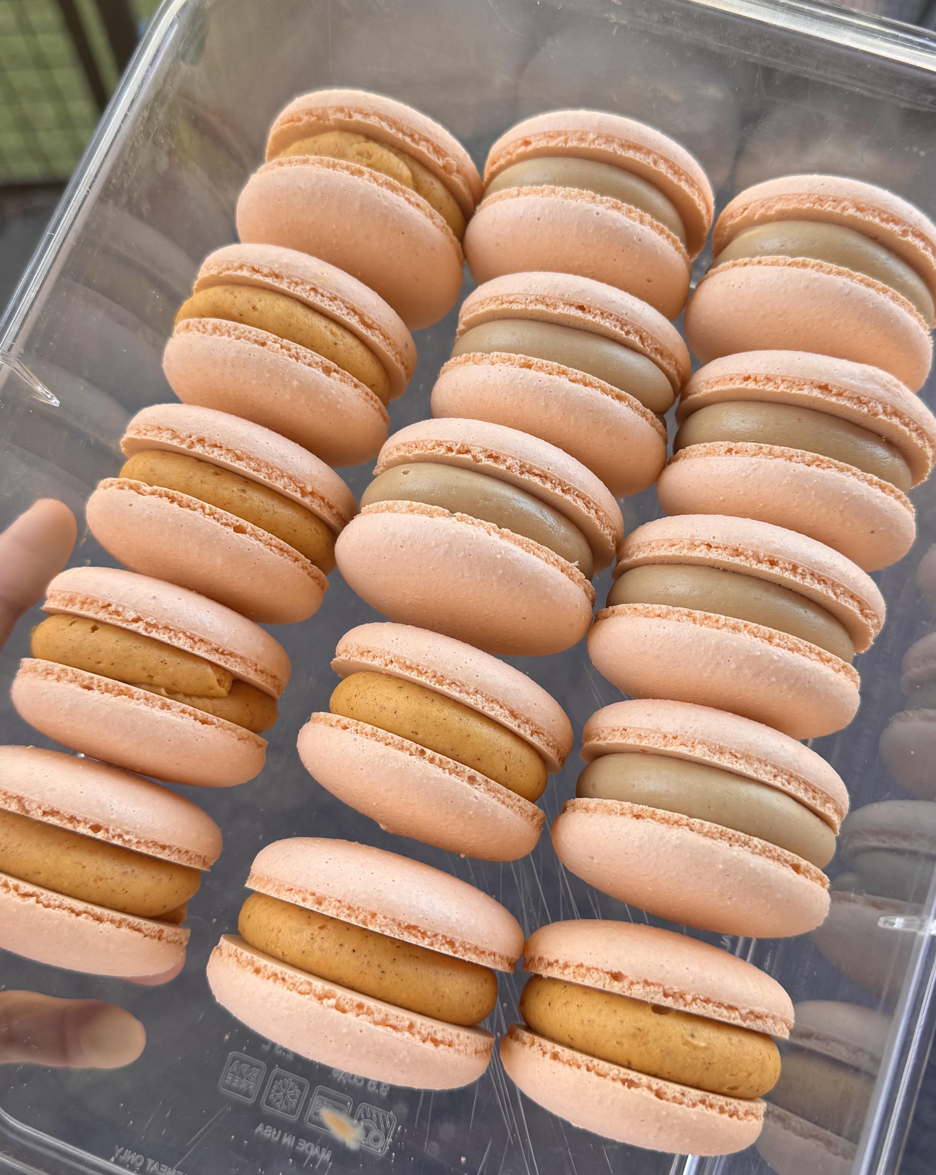 Not as fancy as y’alls gorgeous macs but just testing some ganache recipes I came up with last night. I needed to fill these test shells! Pumpkin cheesecake ganache and second attempt at cappuccino with baileys ganache (still a little too soft).