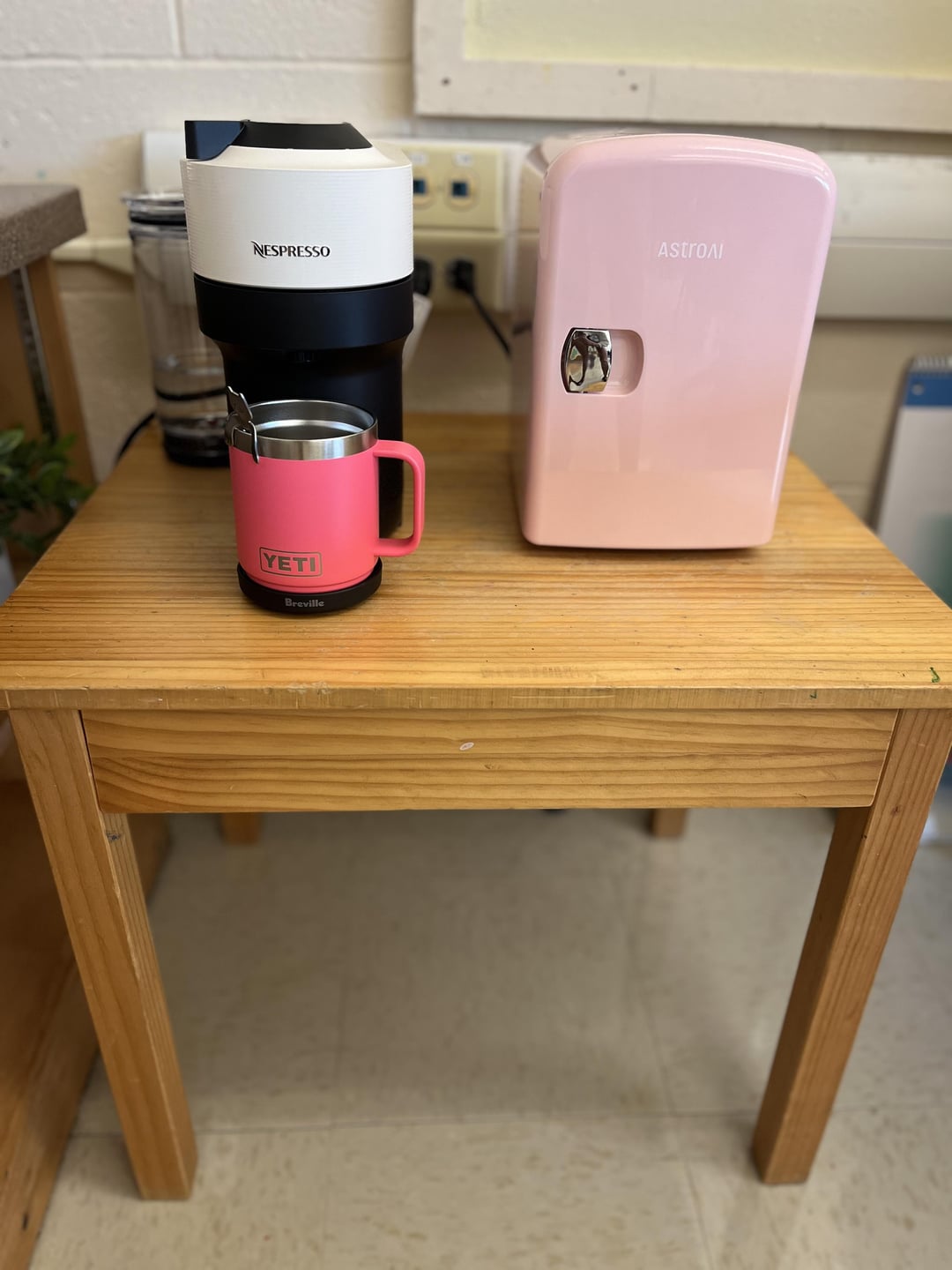 Surprised that your school allows a coffee maker in the actual classroom. We couldn’t have one in ours….safety hazard….