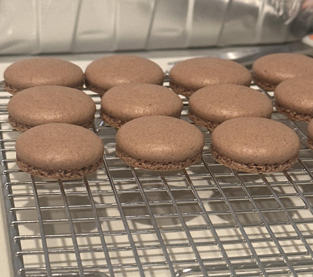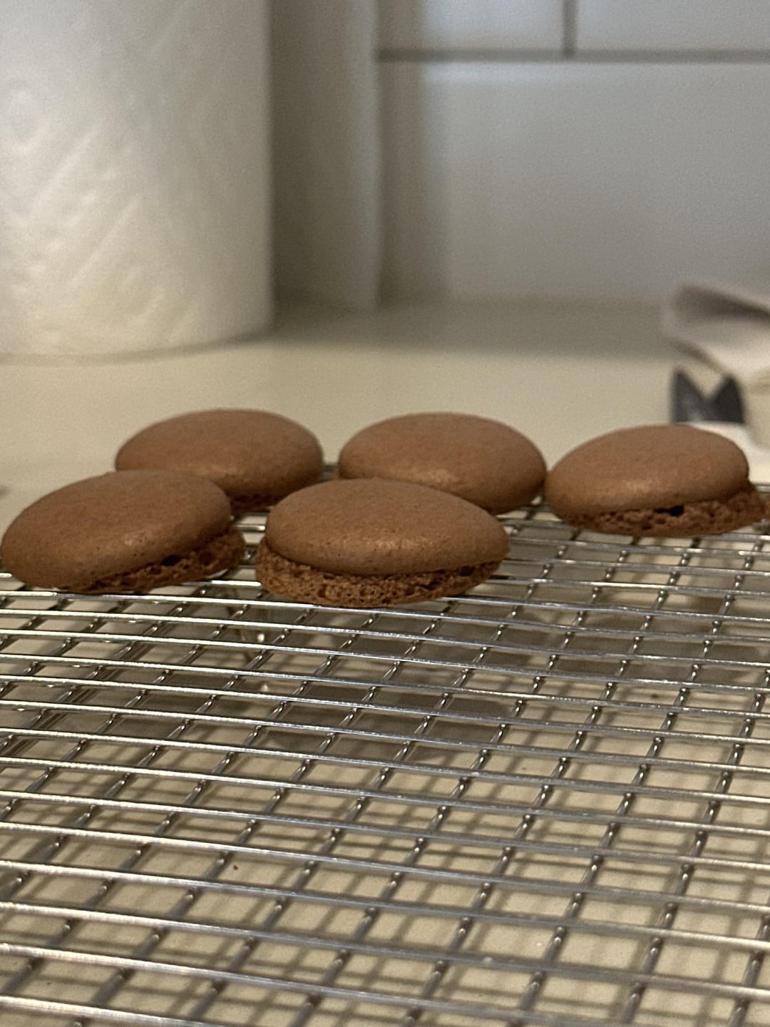 so I’ve been posting a lot in this sub lately bc I recently moved to Colorado and have been struggling hard with hollows. I read somewhere that if you’re high elevation, the Swiss method would encourage a better outcome for macs. So today I tried Pies and Taco’s chocolate macaron recipe. the first batch I made was definitely not right, they were wrinkly on top and had almost a crust where the feet meet the tops. I figured I had overheated my egg white / sugar mixture, because my meringue was super super thick even after macaronaging for almost 25 mins. I tried again, and also used one less gram of cocoa, but now this is my predicament lol. the shells that actually turned out are wonderful, completely full and beautiful. but some of them are slanted and I don’t understand why. I pipe at a 90 degree angle, and the slanted ones are spread out amongst the baking sheet in such a random pattern that I have a hard time believing it has anything to do with my oven temp. I have an oven thermometer and my oven does overheat by about 10 degrees, which I always compensate for when I preheat. any suggestions or advice would be very much appreciated!