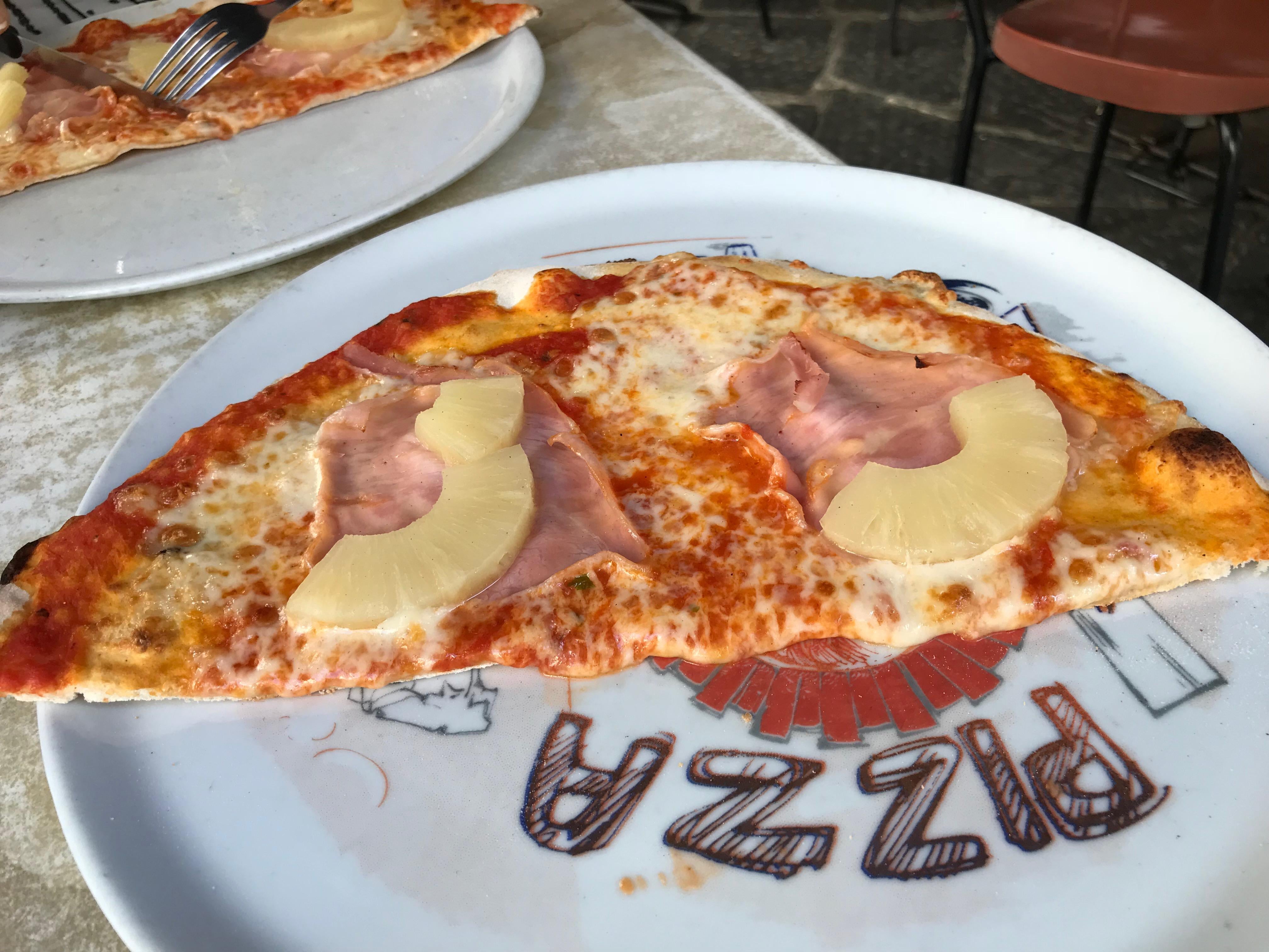 The fascinating thing about Rome is that the tourist-facing sector absolutely does not give a fuck about “cultural heritage,” they just want the tourists to be happy. There’s a place literally one block from Vatican City that serves something called a “German” pizza. It had hot dogs on it. Why? Probably because, a few tables down from us, a very happy-looking German family was devouring one.