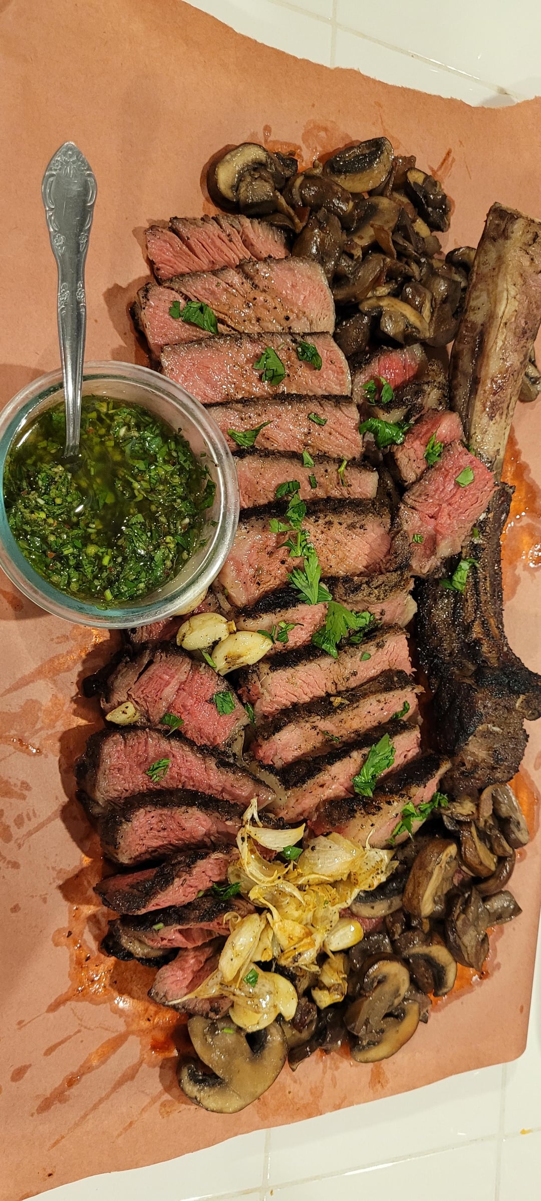 With roasted garlic, sautéed mushrooms and a chimichurri to go with it? Damn that looks good.