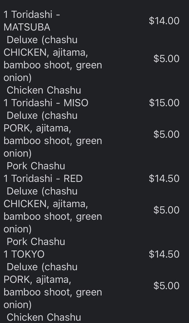 New take out only ramen spot opened in Ghost line. No indoor seating and the patio is hot so def a grab and go spot. They are serving chicken based ramen. I felt it was a bit pricey for take out ramen personally and it was rough eating outdoors but since I drove from north I had no choice, you save money obviously if you don’t add extra toppings, not all of the bowls come with ajitama etc. The Tori red and the Tori dashi were the best options. Ramen broth was not too salty and had great flavor. The toppings were cooked very well. Just an fyi a lot of their side dishes (katsu) aren’t made in house so we skipped those. Def worth checking out if you live in south Austin!