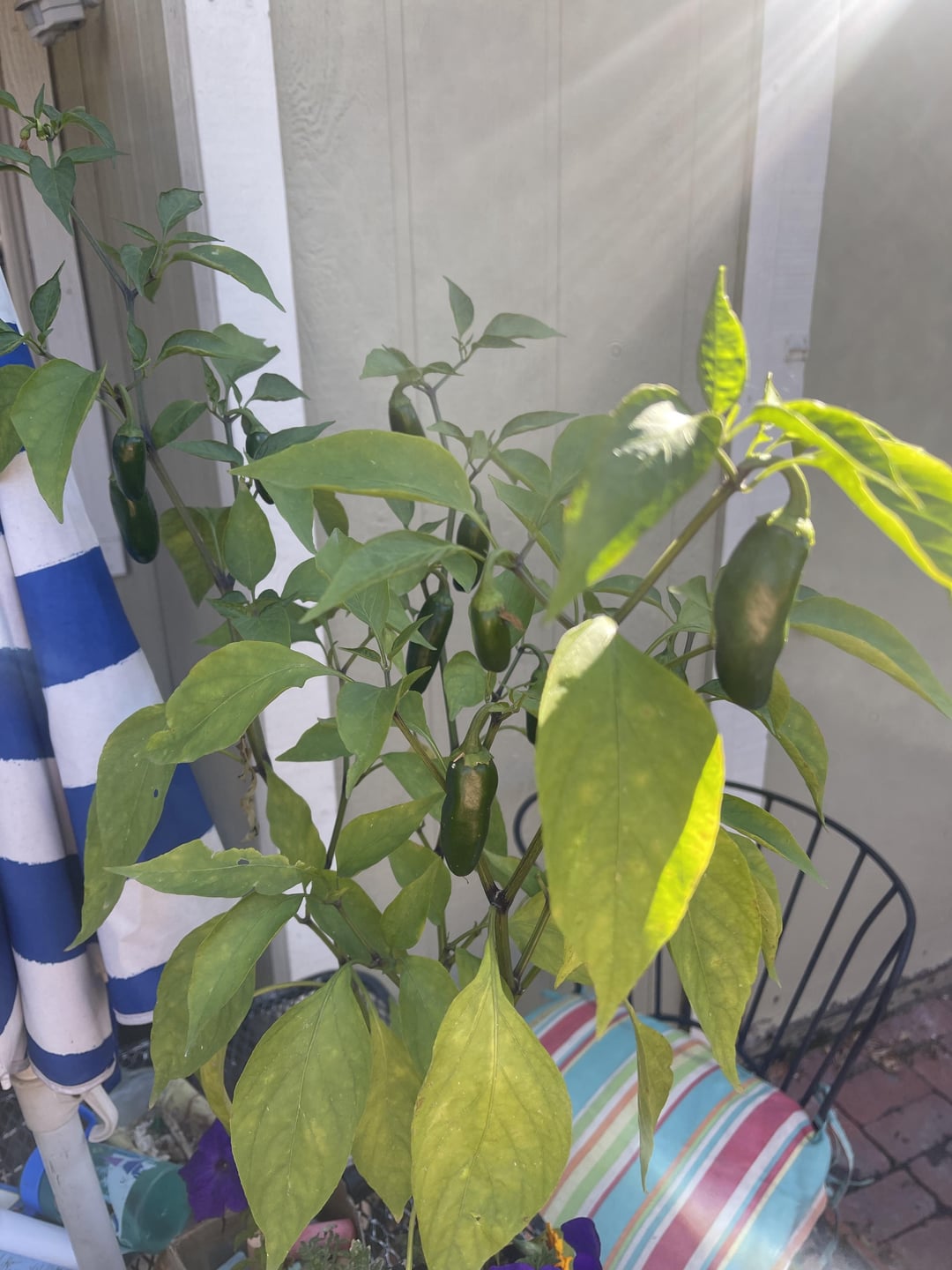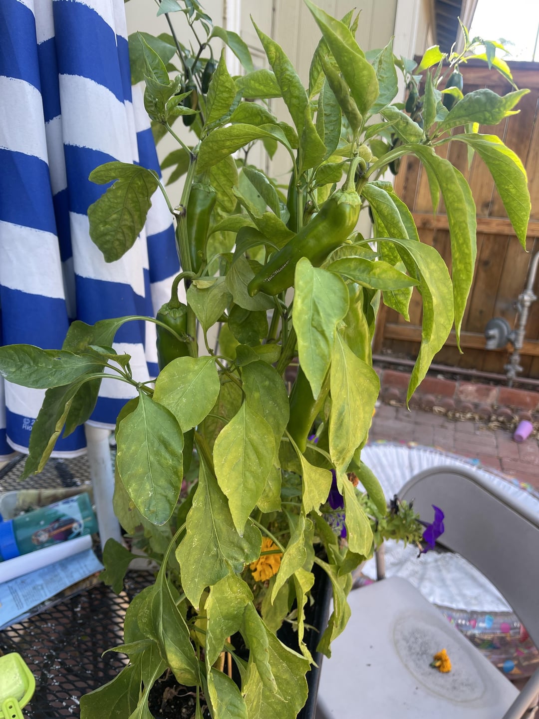 This is the first time I’ve literally grown anything so I’m pretty clueless 😂 first question is, it doesn’t seem like my plants are sprouting any new flowers? Was thinking the leaves on the Anaheims look not so great? Was also expecting them to change color a little more? And the jalapeños, I feel like they haven’t grown in size since all of these popped up. Is that just how big they will get and I should pick them?