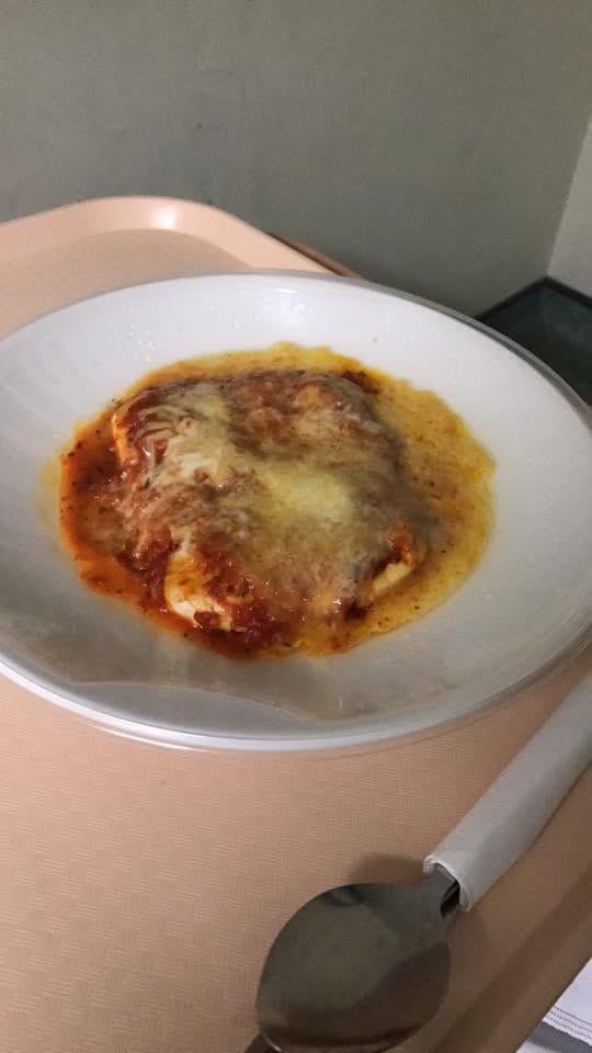 Behold my hospital pizza circa Nov 2016. I’d just had a baby and was on Oramorph but had the wherewithal to know this was a crime. It even came with a spoon!