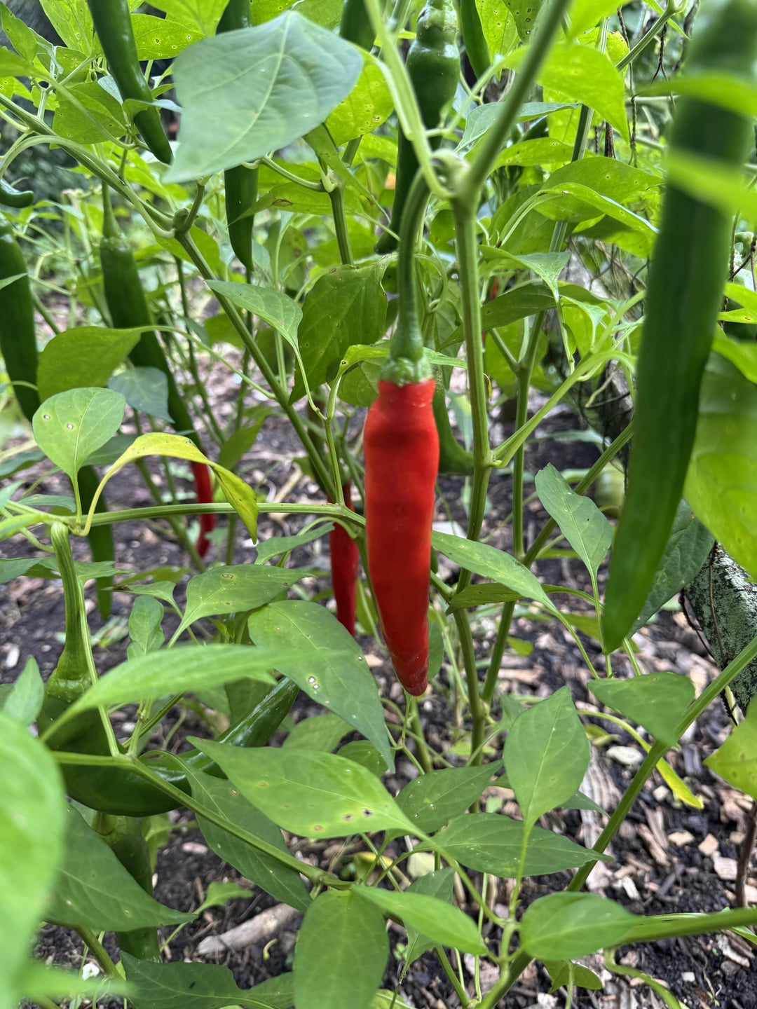 They’re ripening! Yum! Dry the red ones (the seeds and pith can be removed but not necessary) and grind them into a coarse powder – homemade gochugaru (adjust the amount depending on the spice)! The green ones can be sliced and added to food, pickled, or eaten with ssamjang.
