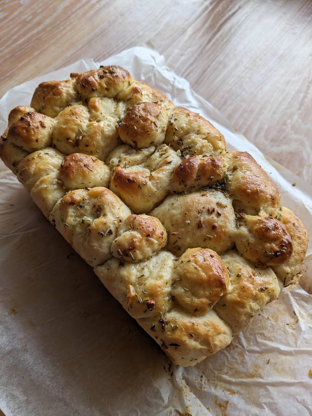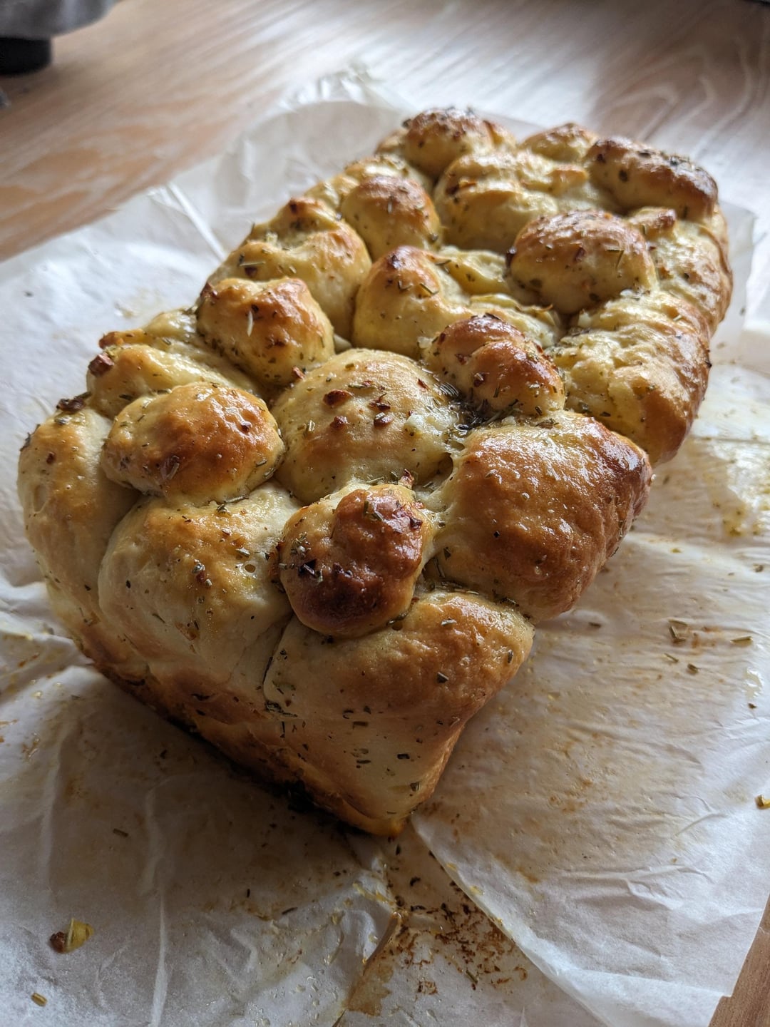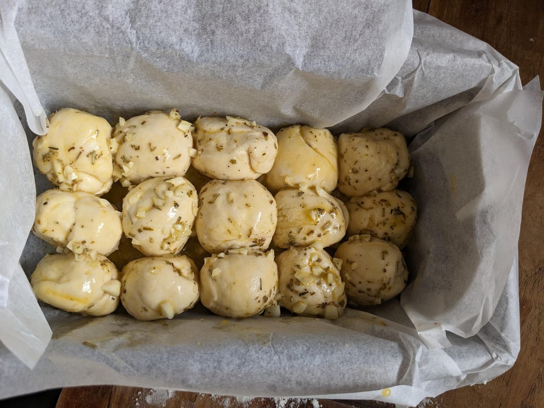 This is my dream pull-apart loaf, lovely and pillowy and heavy on the garlic! I substituted the sour cream in the recipe for Greek yogurt and I glazed it with extra garlic butter after baking and it was an absolute treat. Only 1 hour of proofing in total, so it worked up quite quickly.