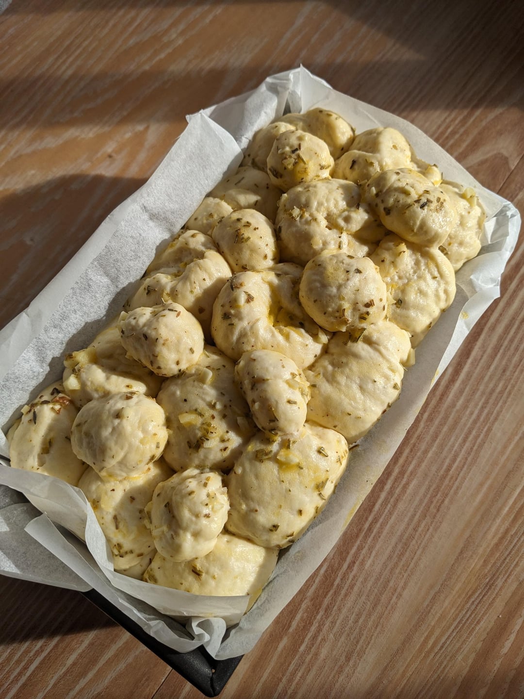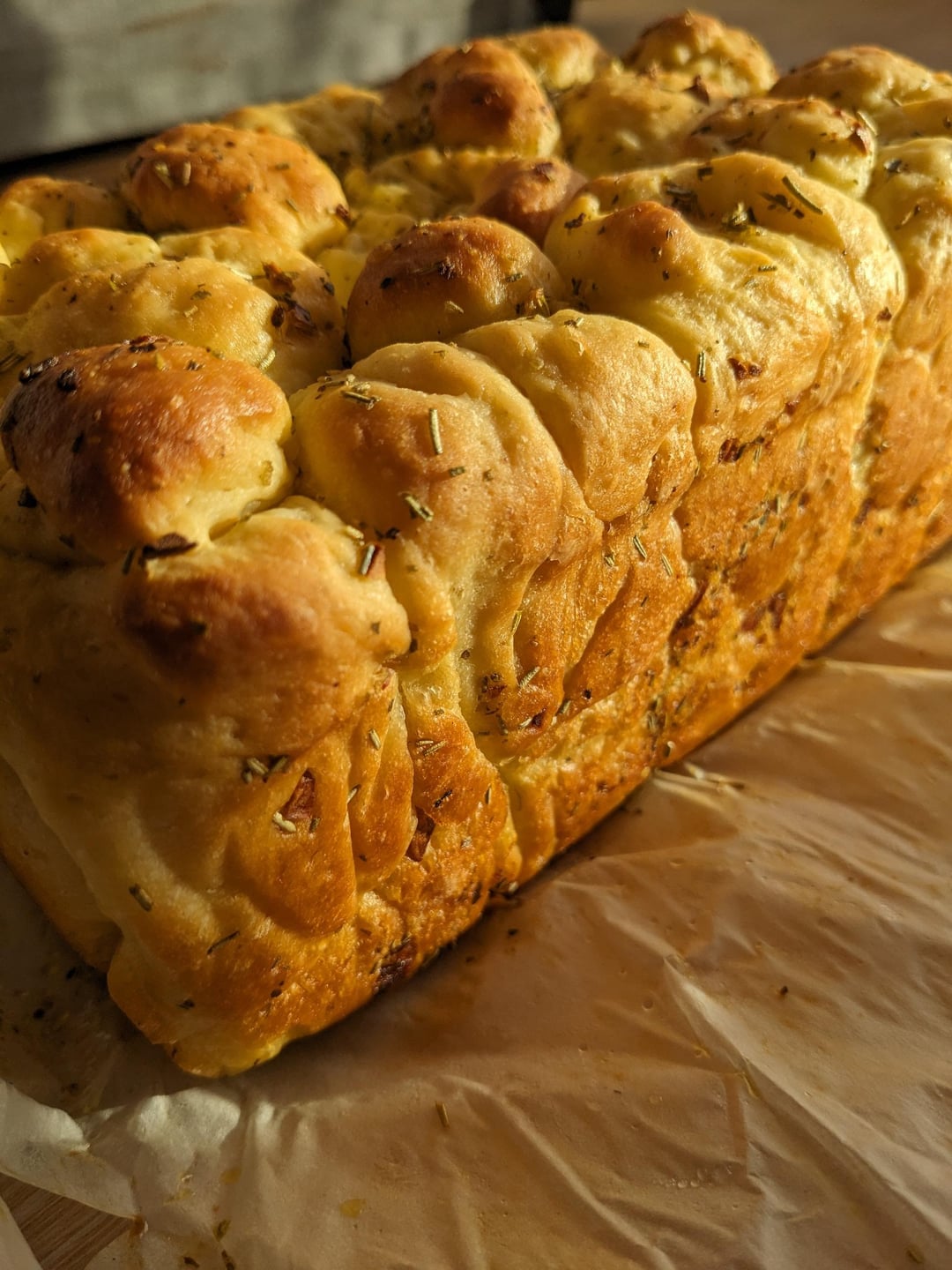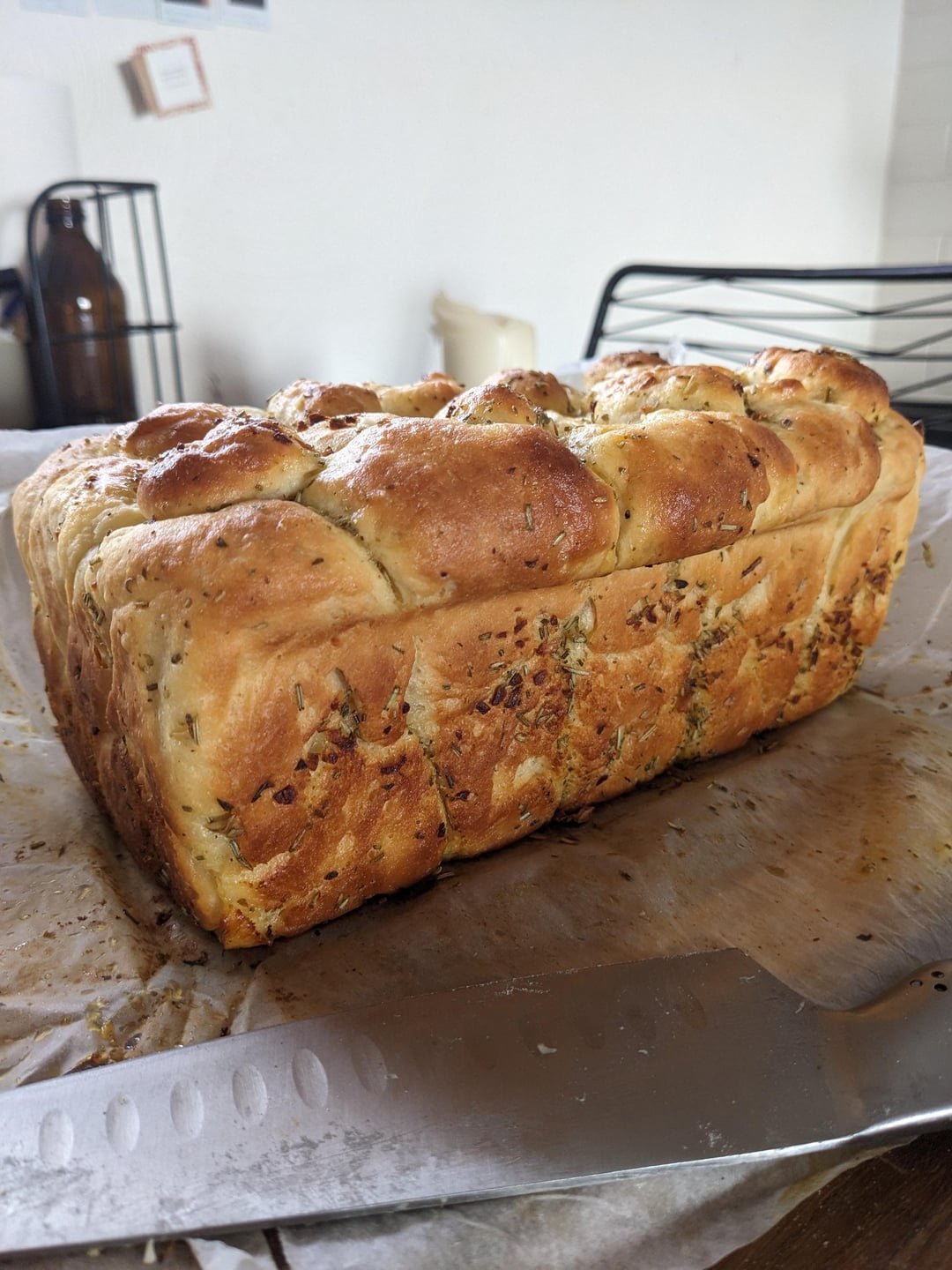 This is my dream pull-apart loaf, lovely and pillowy and heavy on the garlic! I substituted the sour cream in the recipe for Greek yogurt and I glazed it with extra garlic butter after baking and it was an absolute treat. Only 1 hour of proofing in total, so it worked up quite quickly.