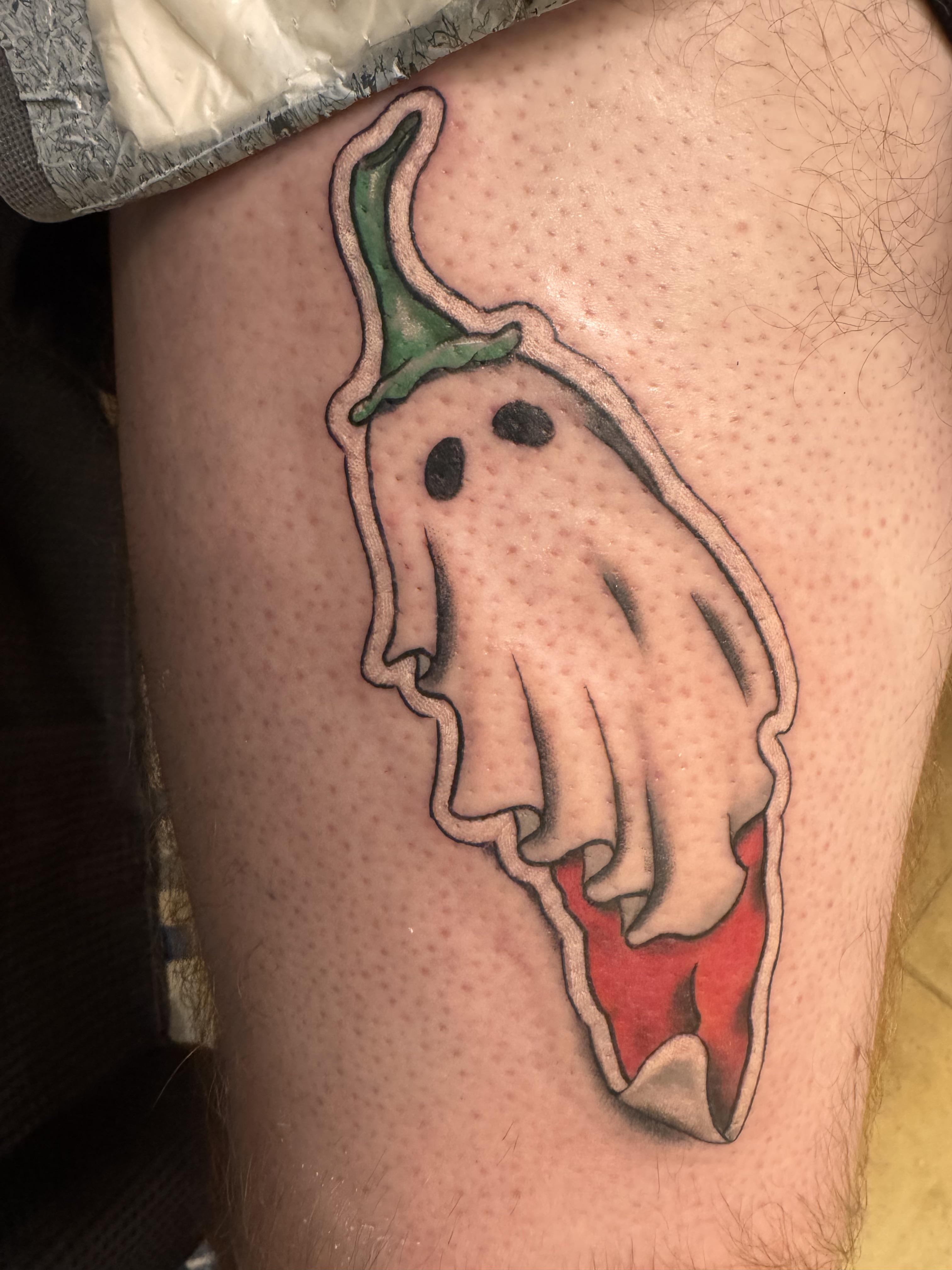Done at Lucid Arts Tattoo Studioby messofken 5 Comments Strokesite 1 year ago Very creative! wumbologistPHD 1 year ago Why’d you get a tattoo of a sticker? PlatinumPlayer 1 year ago Awesome art. Don’t really get why it’s a sticker though Familiar-Bag-9545 1 year ago Ghost pepper sticker tattoo. LLUDCHI 1 year ago SorryWrite A CommentYou must be logged in to post a comment.