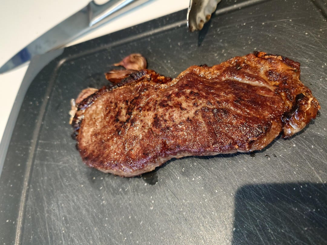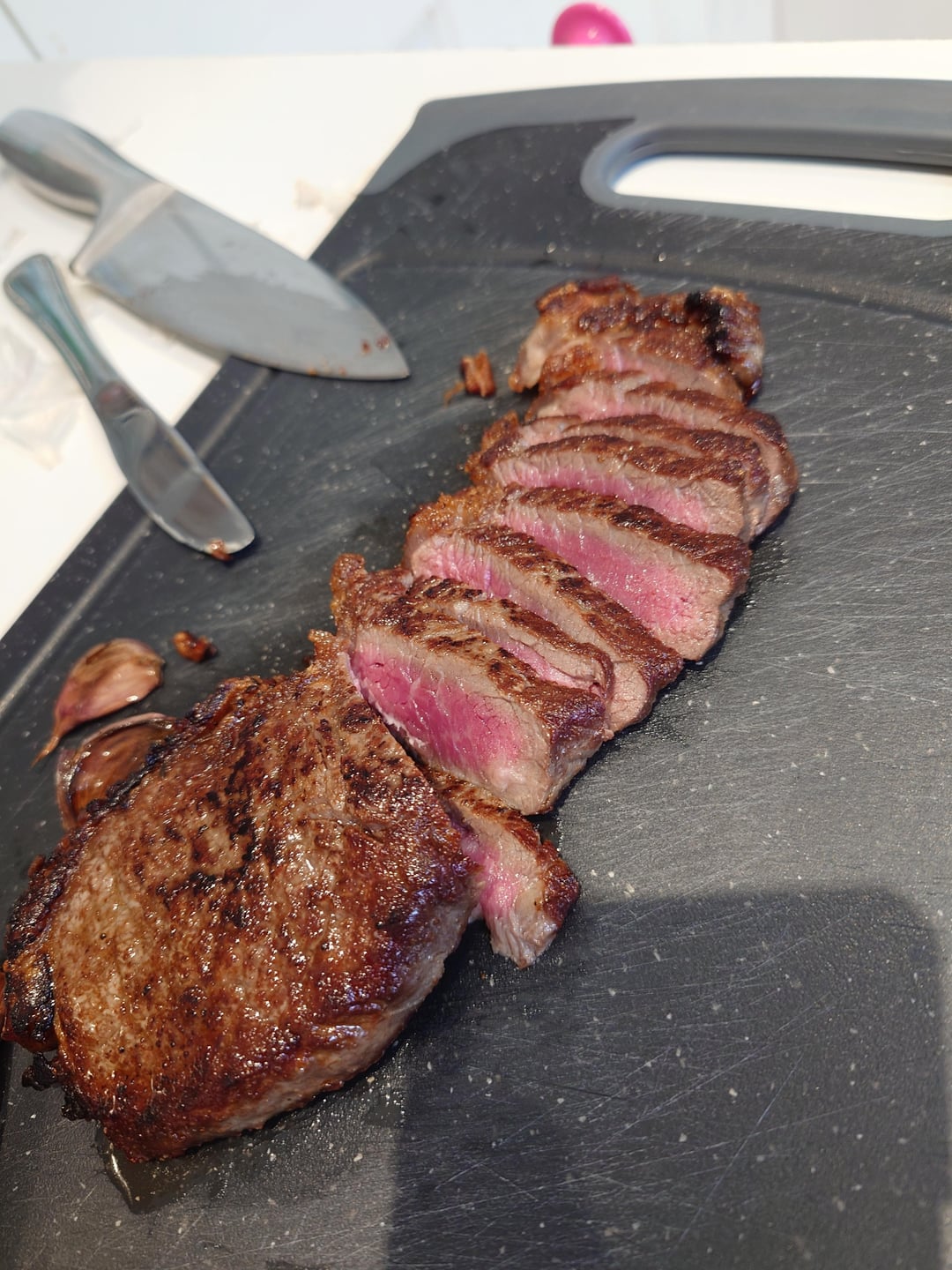 £3.70 sirloin steak from Lidl, dry brined, fat scored, and pan seared. by pbroingu Write A CommentYou must be logged in to post a comment.