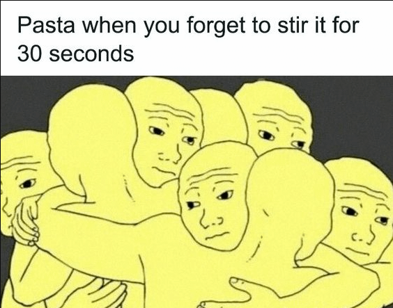 It be like that tho…by ChonkyChungus69 3 Comments saurus-REXicon 1 year ago Couple tbls of white vinegar. And they’ll like eachother less.Granted that volume can differ GoSuckOnACactus 1 year ago Hey man if you were being boiled alive you’d want some comfort in your final moments too. MegaMasterYoda 1 year ago Just add some oil to it when you add the the noodles.Write A CommentYou must be logged in to post a comment.