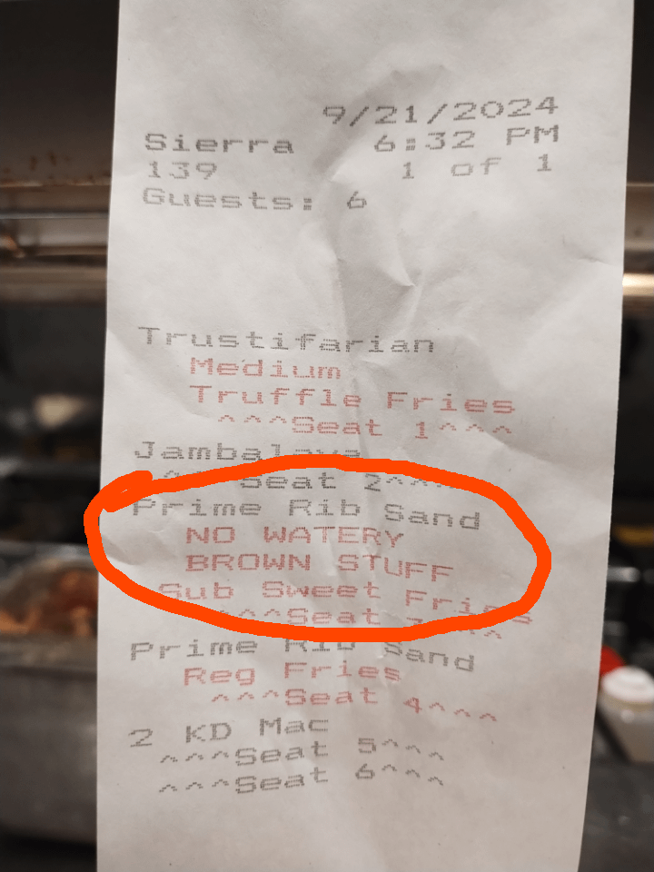 Servers at work always make time to type “dressing on side” into the mod box when the dressing always comes on the side. Drives me up a wall.