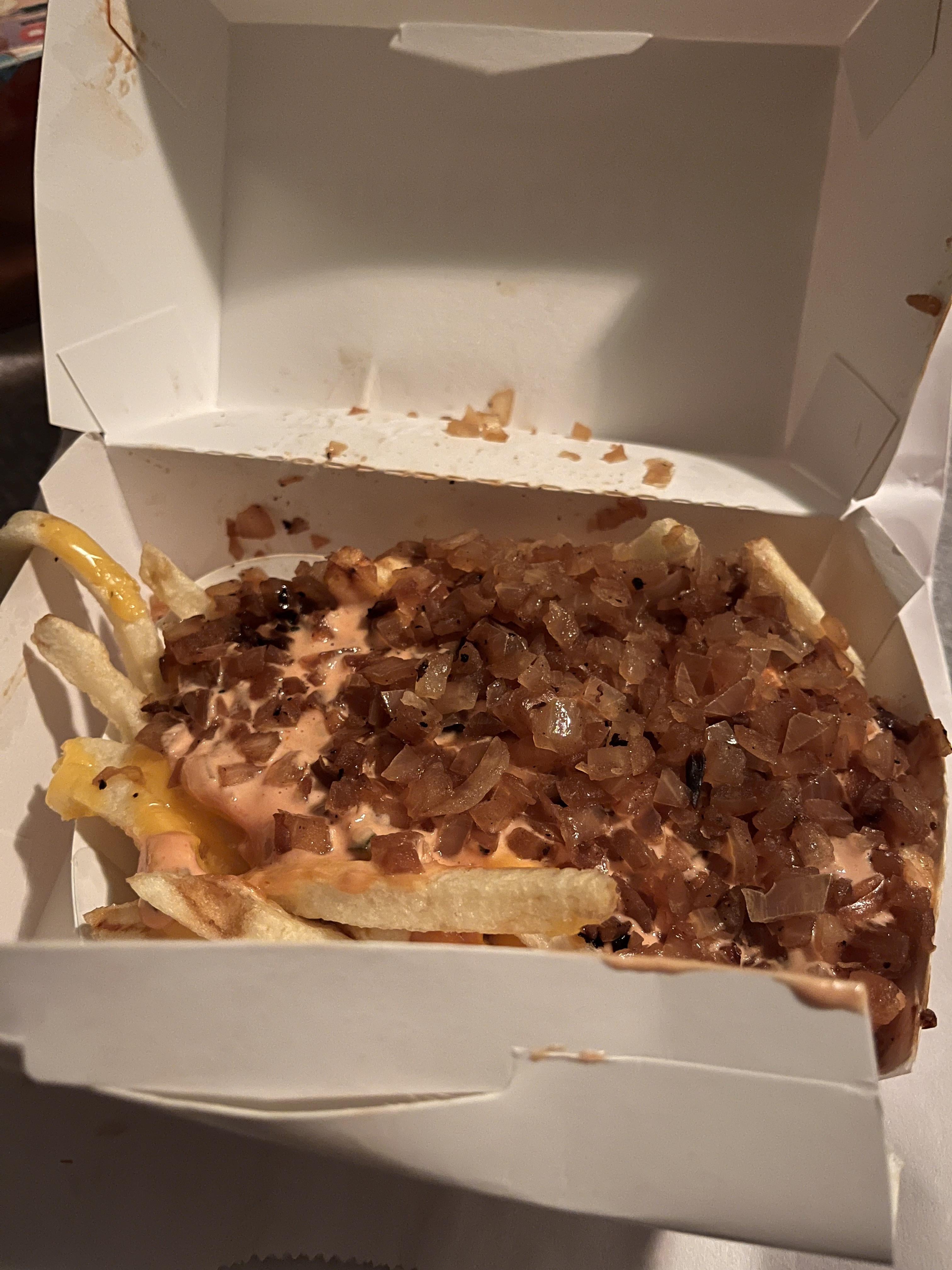madmax727 1 year ago I get no cheese no sauce, Well done fried. Double extra carmelized onion Double extra raw cHoppedSame price as normal fry. Got to love in n out