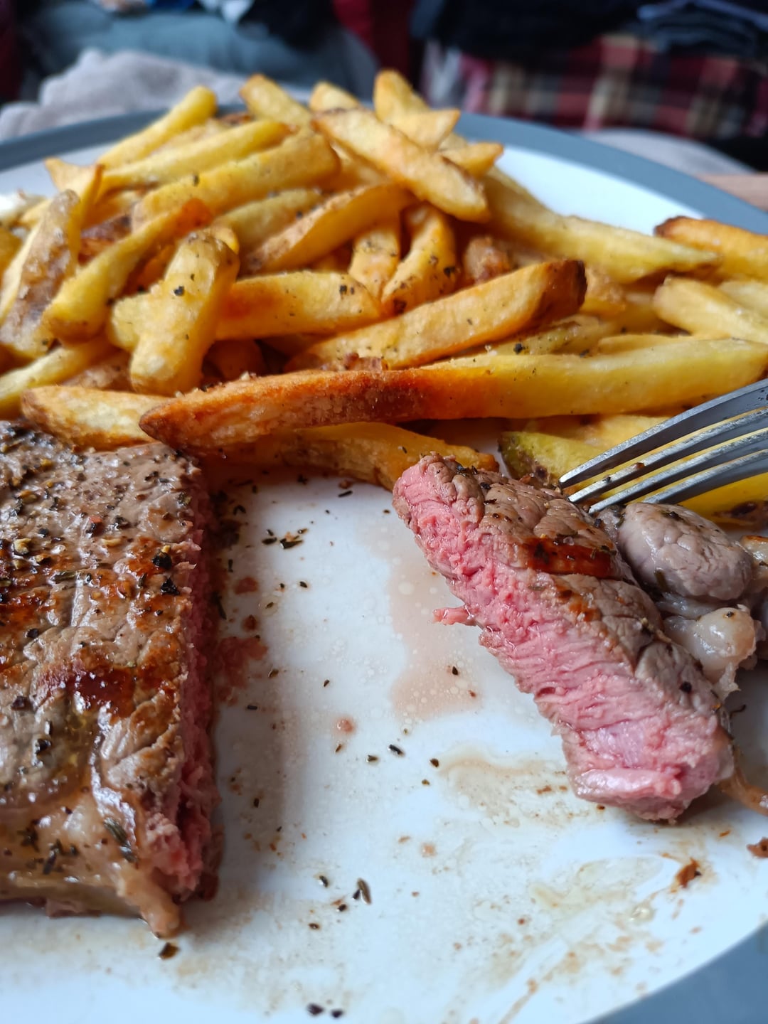 Sudden urge for a steak on my way home, garlic and pepper mayo, steak (med-rare) cooked in butter and thyme. Salad was off so filled the rest of the plate with chips what a shame…by [deleted] Write A CommentYou must be logged in to post a comment.