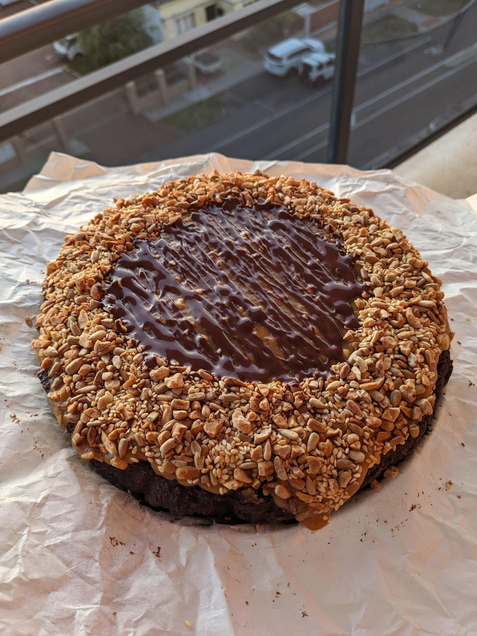 I made the cake mix by blending oats, and adding baking powder, blended dates with maple syrup and almond milk, and plenty of cocoa powder. It turned out like a brownie consistency but not overly sweet! I've been trying to think of ways to get my sweet fix without using too much sugar in my recipes, so this was the result!