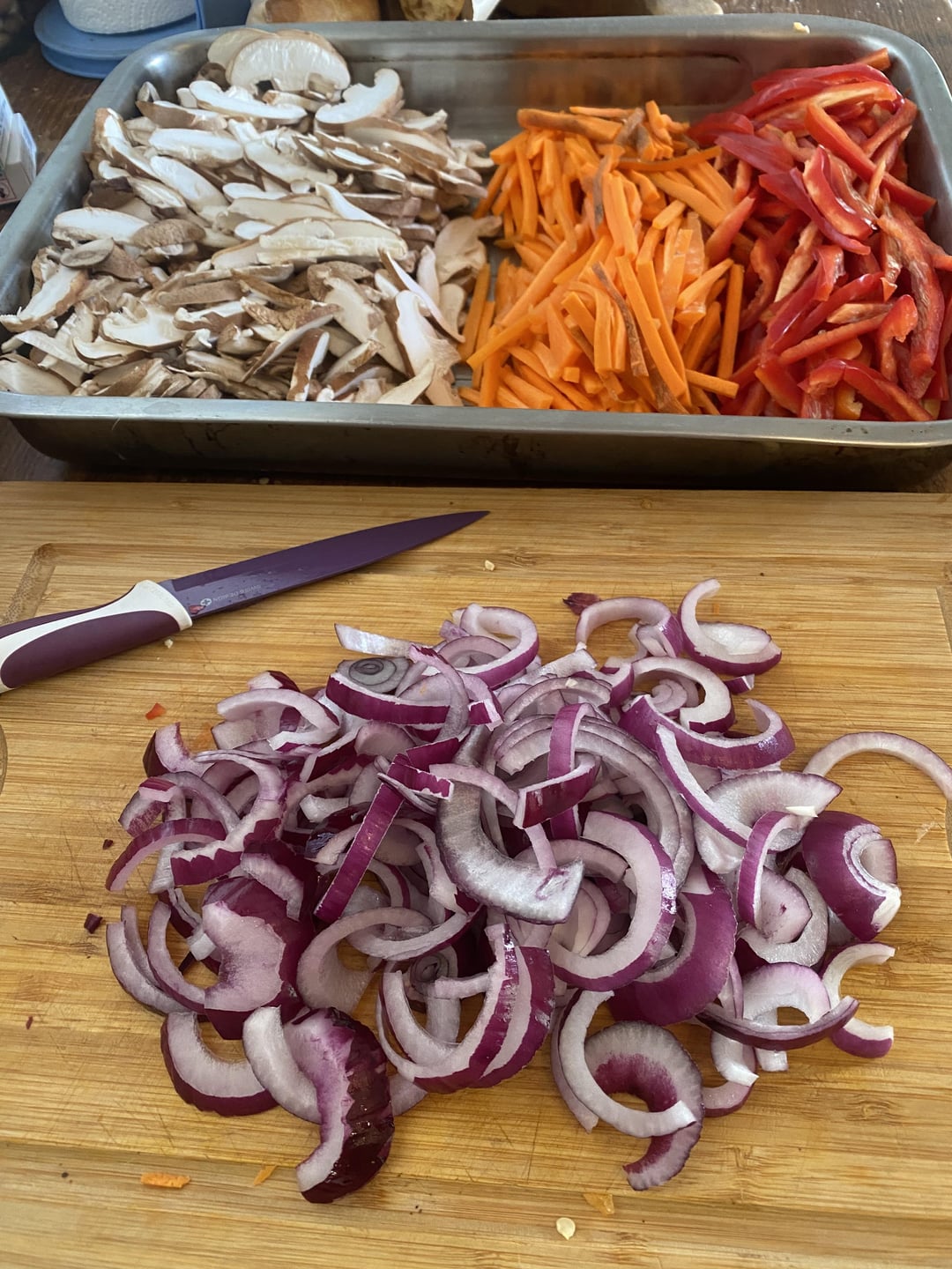 My girlfriend's family came all the way from Korea. I decided to make japchae for the 1st time! The fact that it took a long time to cut all the vegetables was worth it, it was so good!