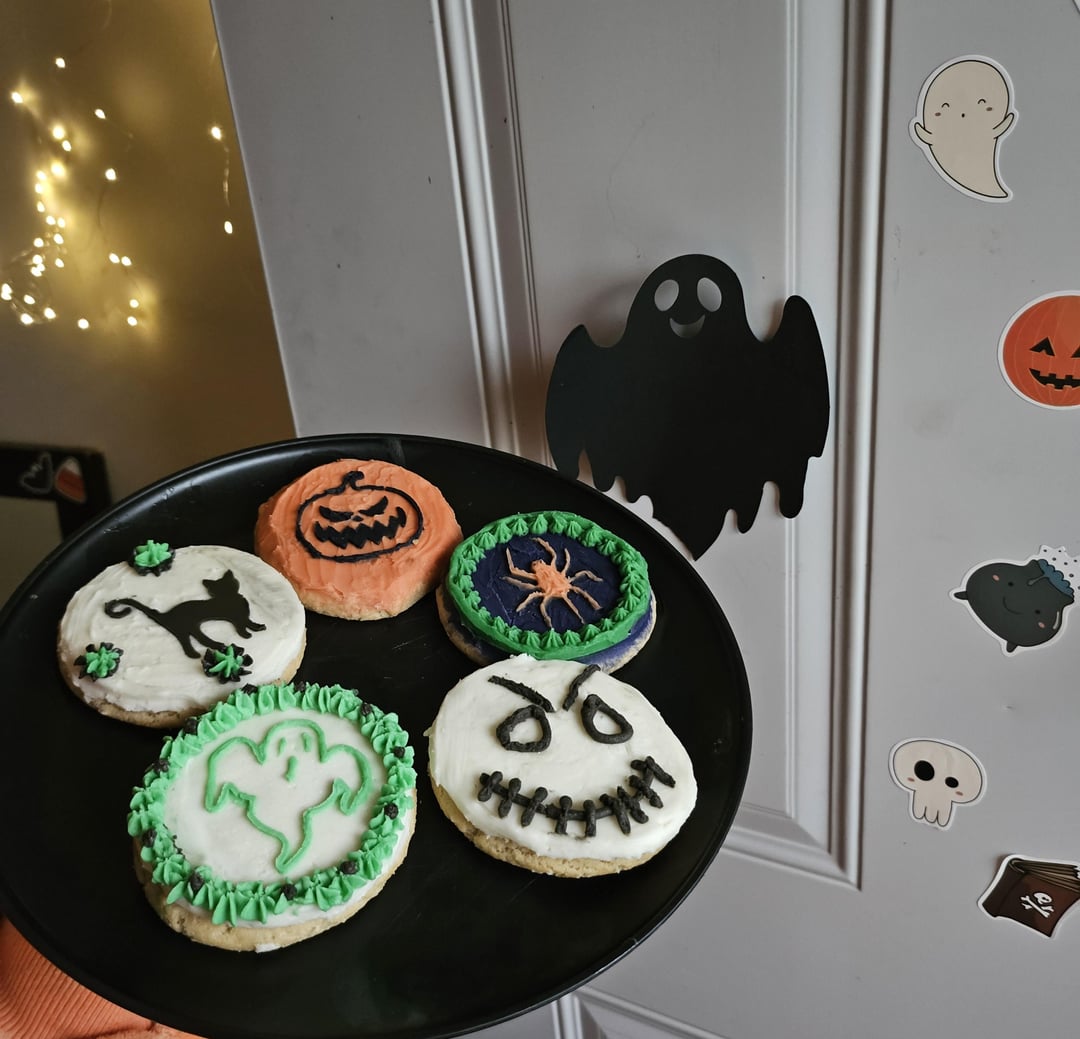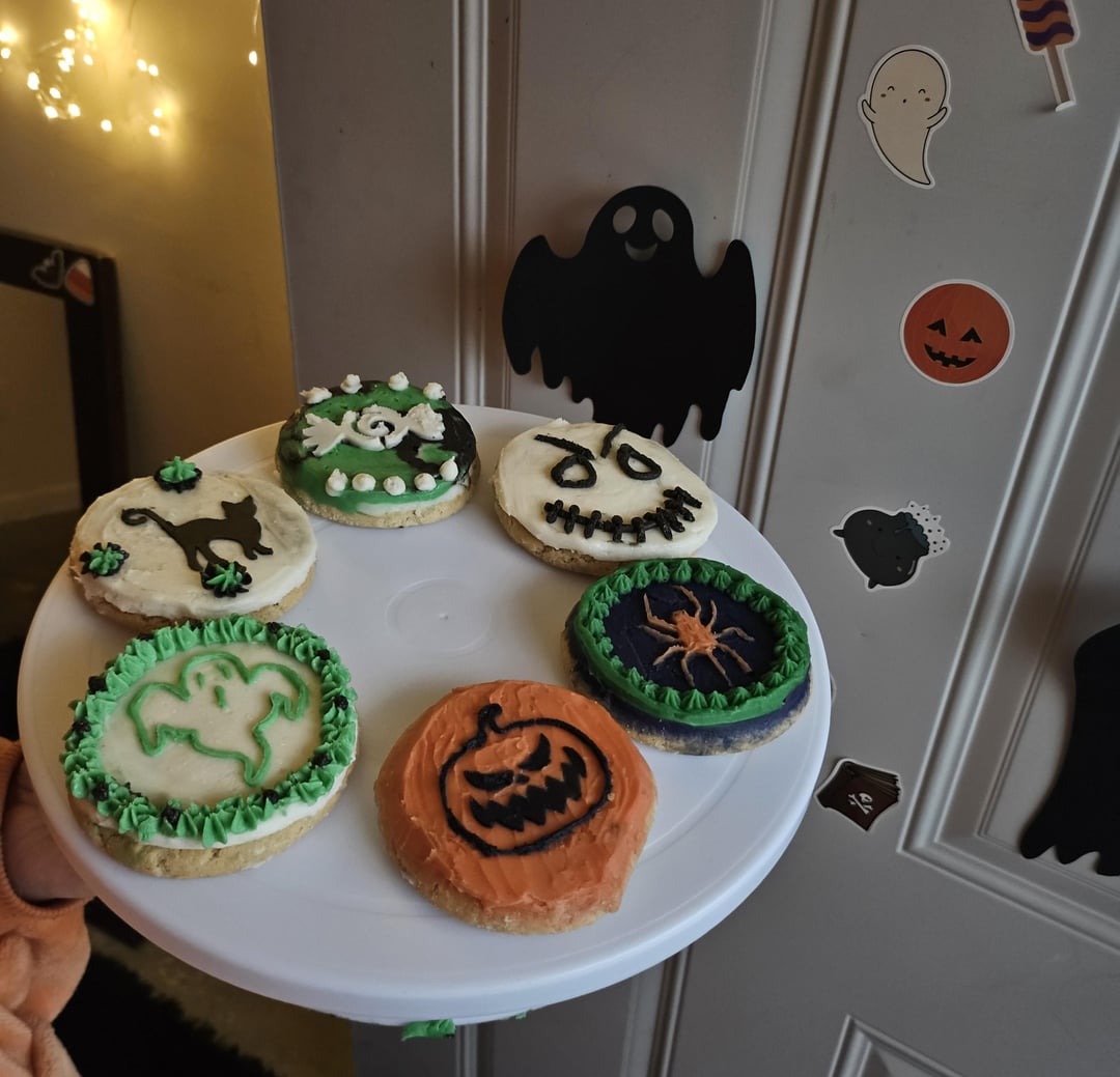 My first ever set of cookies, idk I thought maybe I would share them here. I love looking at everyone’s work by secretgirlcum 3 Comments Competitive-Metal773 1 year ago They look so fun! I haven’t decorated in years but I’m hoping to start again soon! I too love looking at everyone’s work. hornyboomer2003 1 year ago i would eat these in a heartbeat they look amazing CrunchyTeatime 1 year ago Imaginative and cute. Love all the variety of colors and designs.The orange spider on black and green background is really cool and different.Lots of variety, nice job, very festive.Write A CommentYou must be logged in to post a comment.