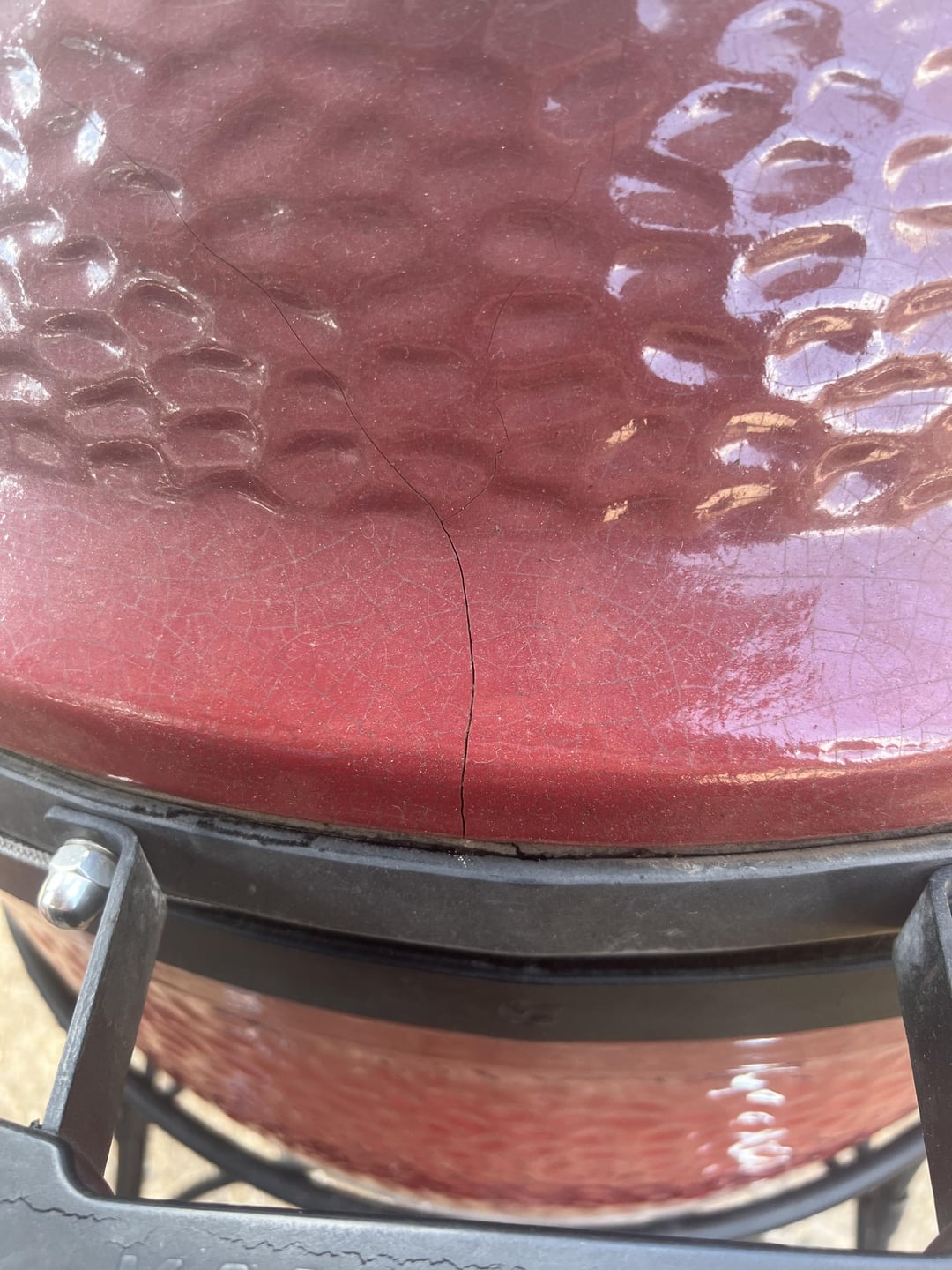 Yikes. Has to be a combo of thermal shock and either the top band or chimney cap being too tight.