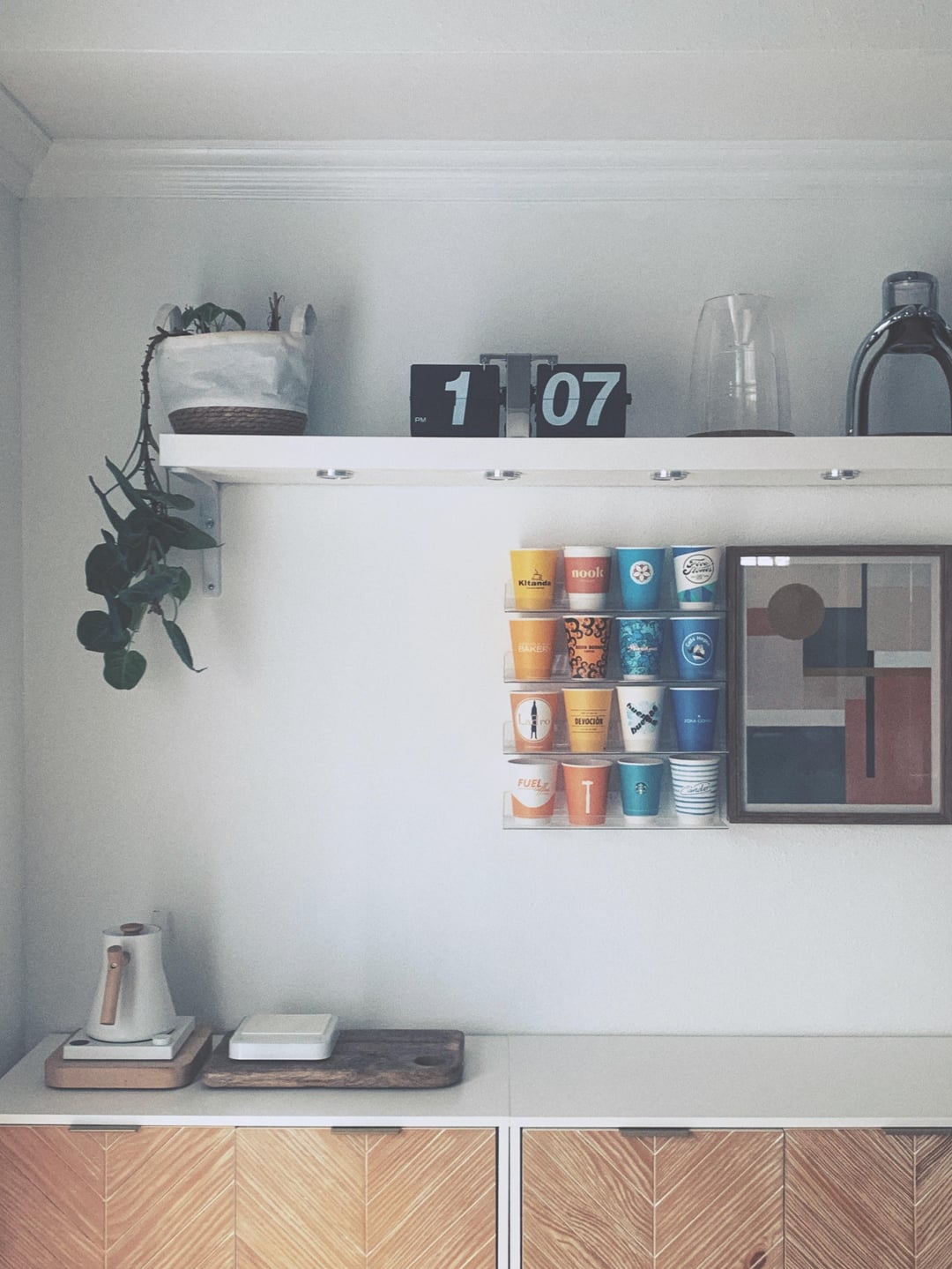 Most of my gear is hidden away as I prefer a minimalist aesthetic, but my daily drivers are the Stagg kettle, Acaia Pearl, various carafes and the Fellow Stagg [X] brewer. Pictured on the shelf is the Manual Coffeemaker N°1 and the ROK espresso lever machine.