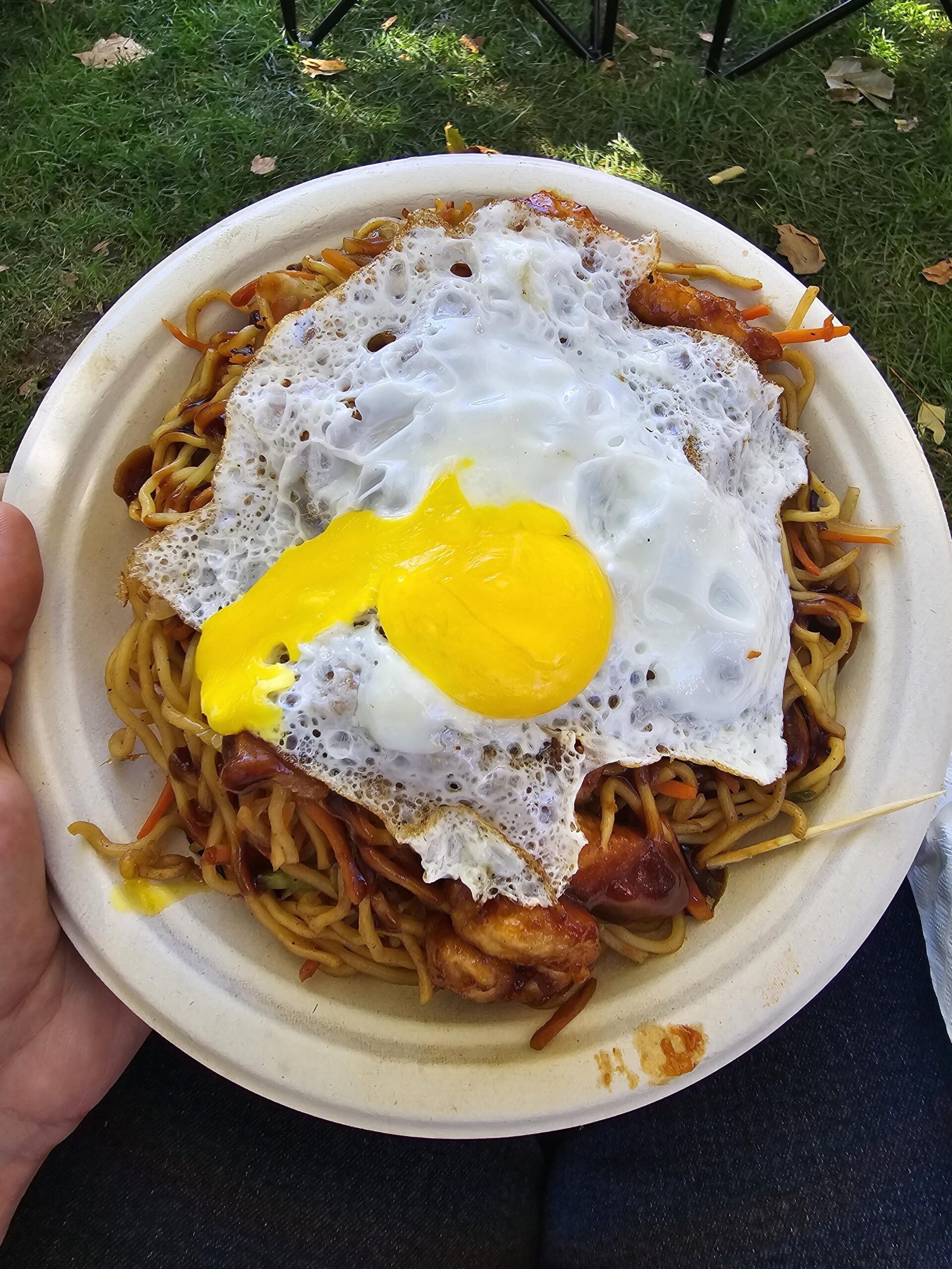 Sunny side up on pork yakisoba