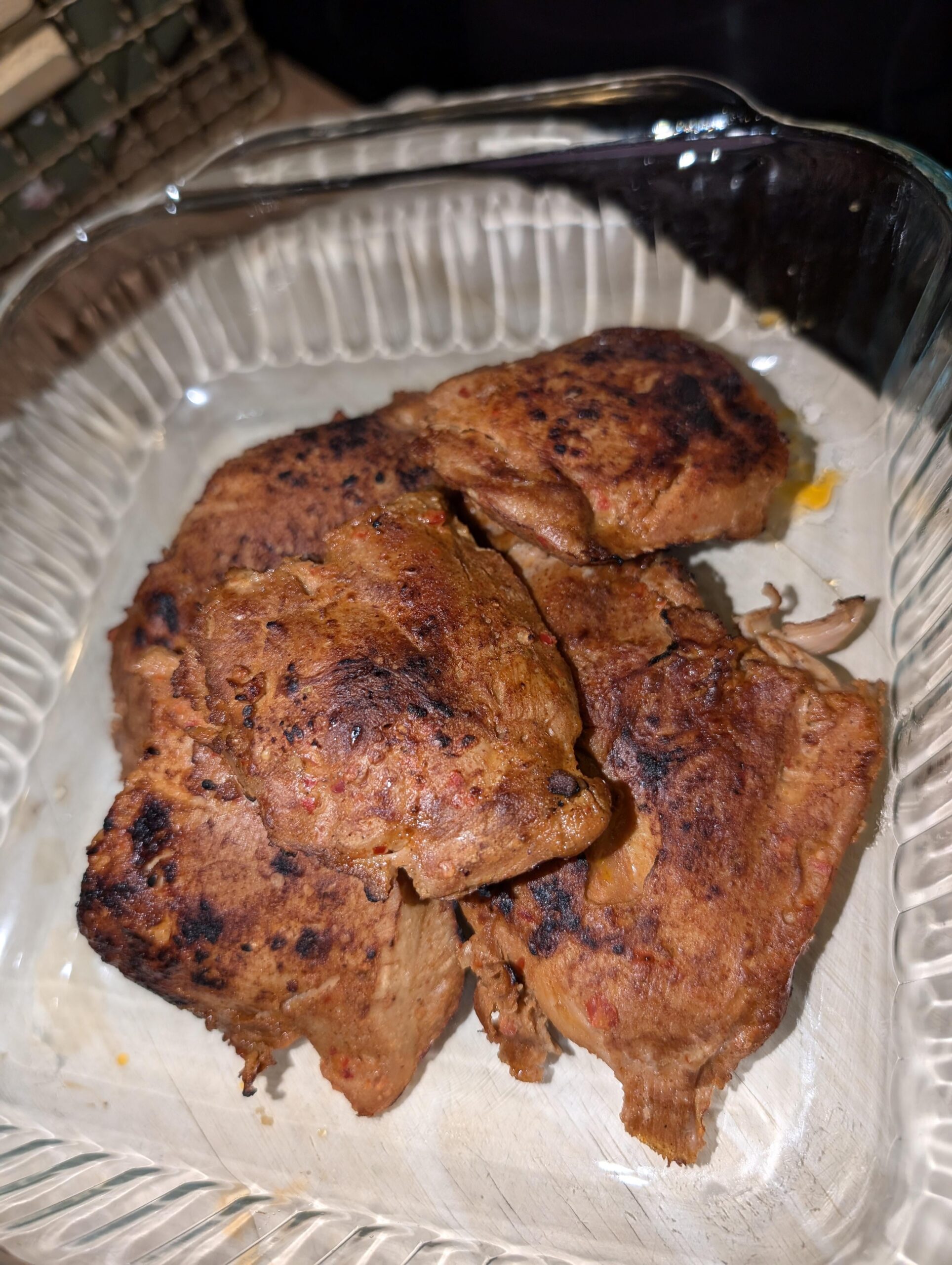 I picked up a Searzall Pro to help out my ribeyes, waiting fory paycheck to come to test it out properly, but I've been testing it on some sous vide chicken thighs we've made a few times this week.