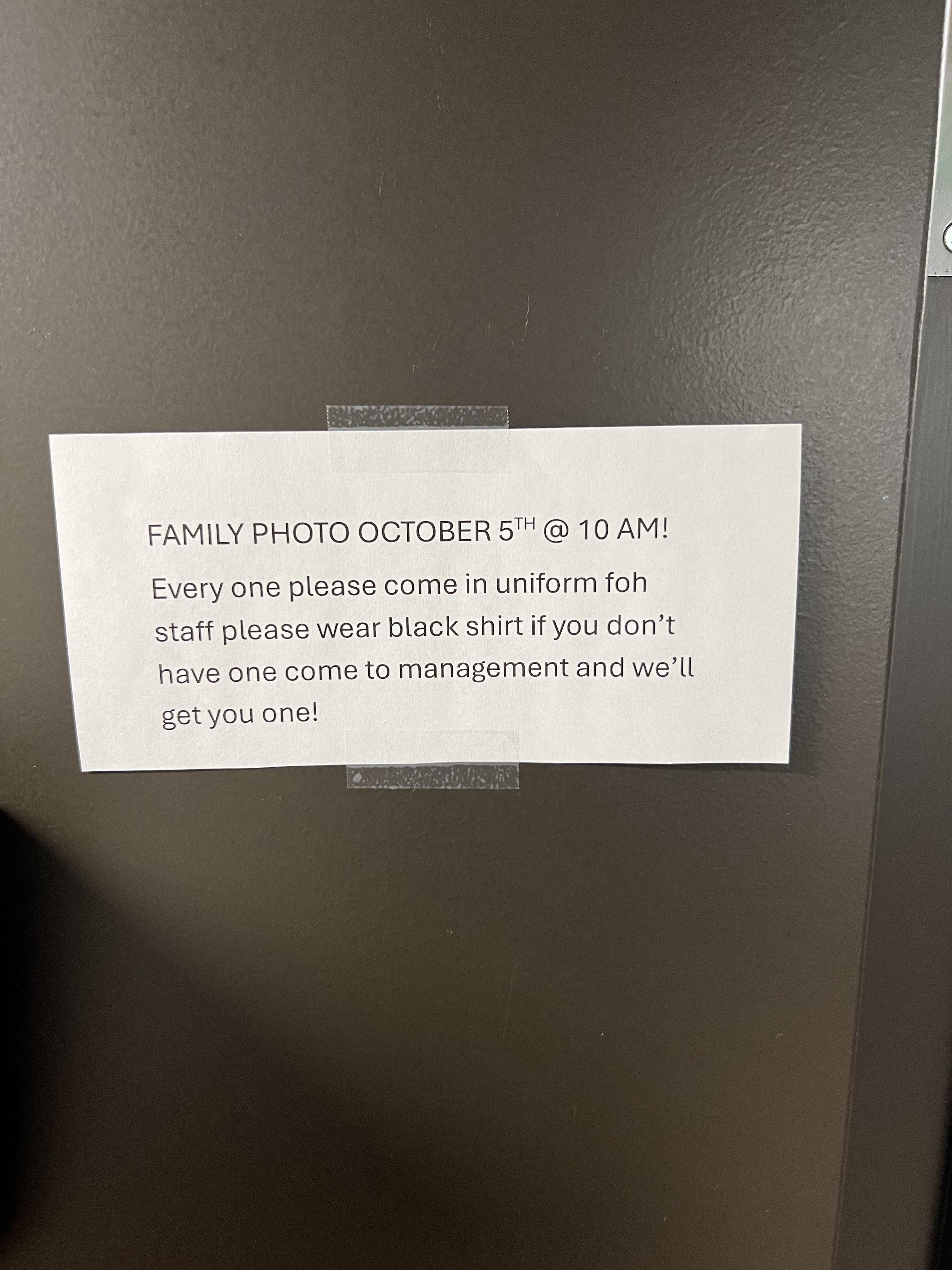 We had to do one of these for Christmas at one restaurant years ago, but it turned into a giant joke because one Mexican guy had such dark skin you literally couldn’t see him in the picture. The background was dark, and it became a thing of showing the picture and asking who is missing.