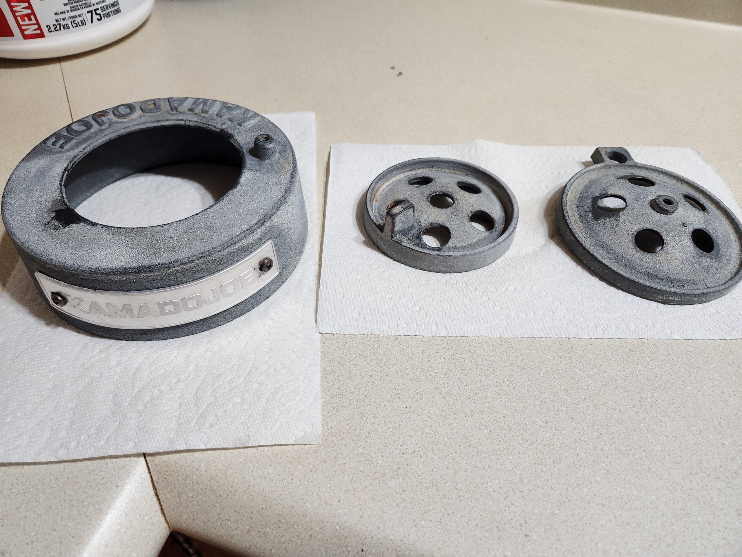 I recently bought a second hand kamado joe that looked like it had never been cleaned. I should've taken a picture of the top vent but it was extremely caked with grease. To the point where it was hard to rotate the vents. Anyways I scraped it clean with a wire brush then tossed it in the oven. This is what it looks like now lol.. Anyone else have the paint completely off their top vent? And should I replace it or is it safe to use? Thanks.