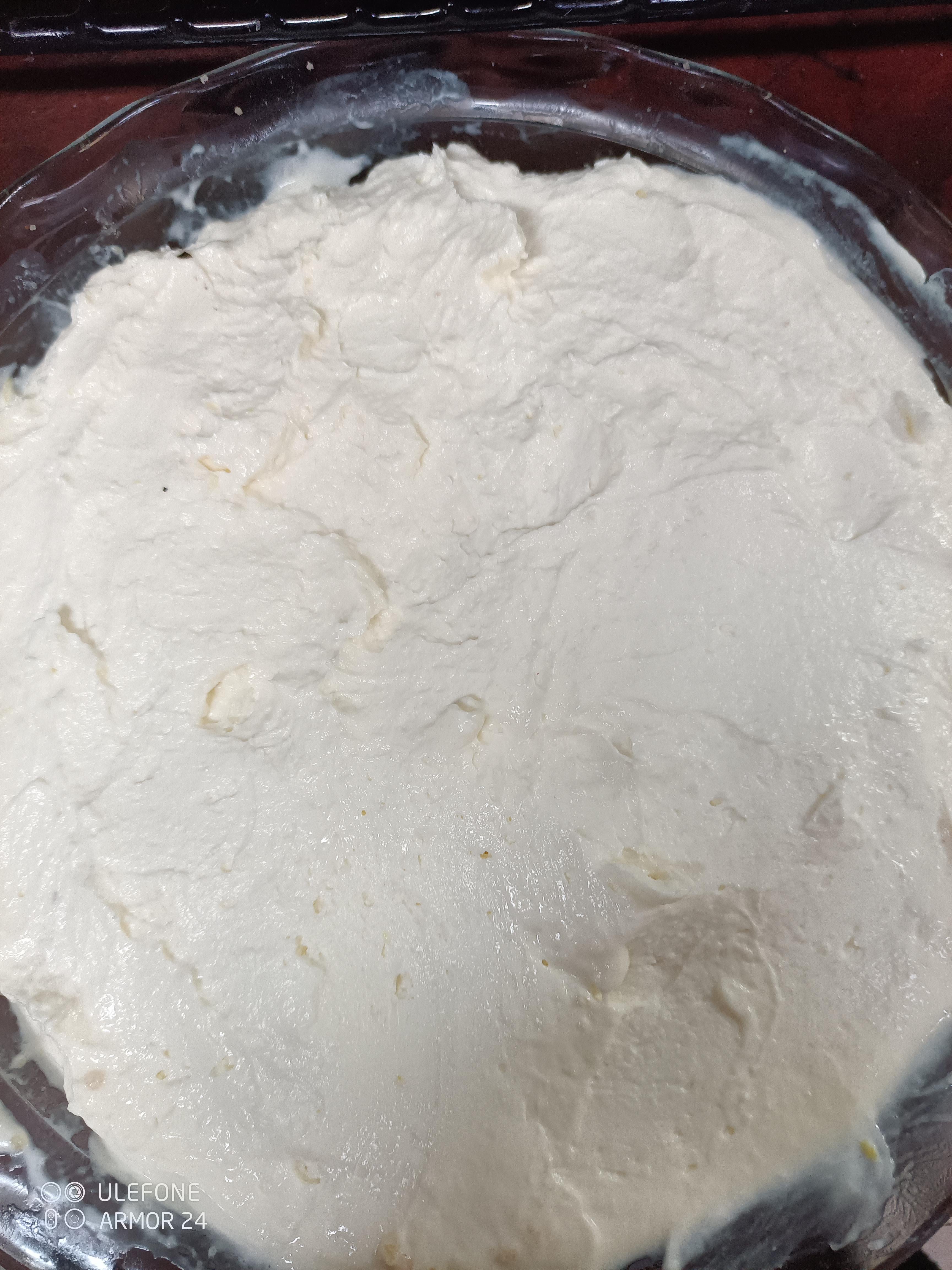 This is a key lime cheesecake before I use a pastry spatula to smooth it out.