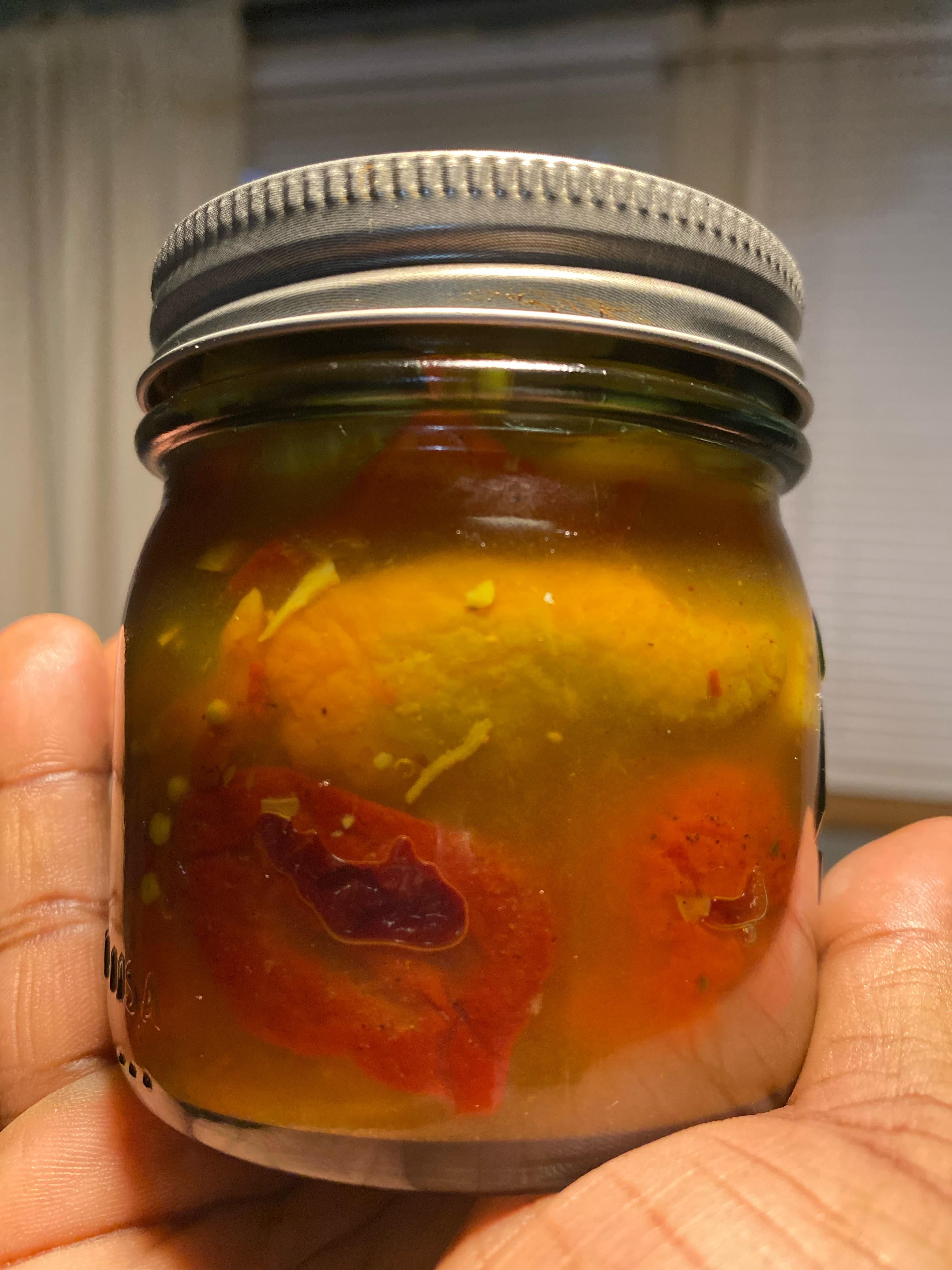 You said it’s hot peppers? No it doesn’t look good. Did you store it with the ring on?