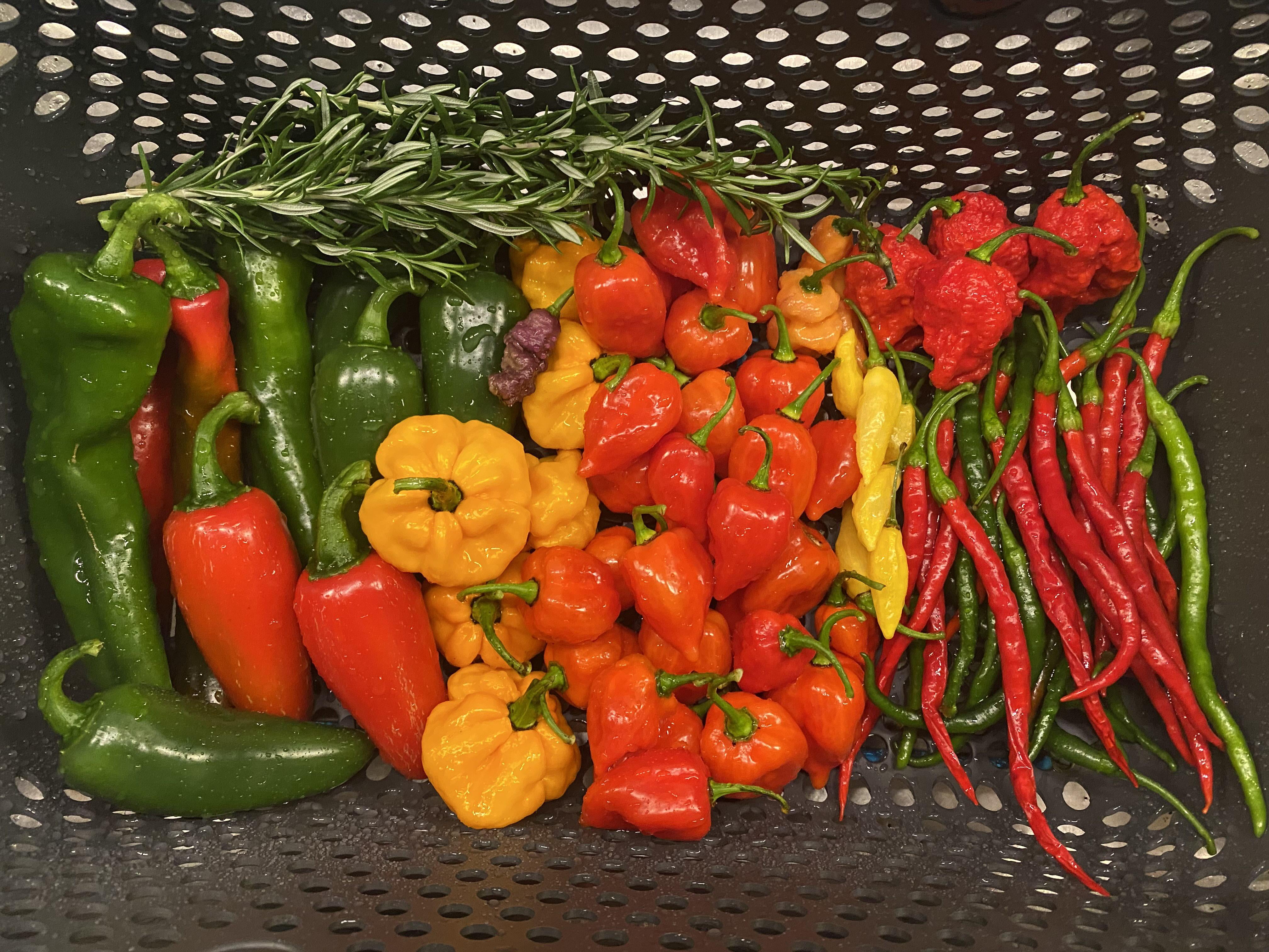 Red and green anaheims, red and green jalapeños, scotch bonnets, red habaneros, lemon drops, Carolina reapers, red and green cayennes, some rosemary.by hotsawcebubba Write A CommentYou must be logged in to post a comment.