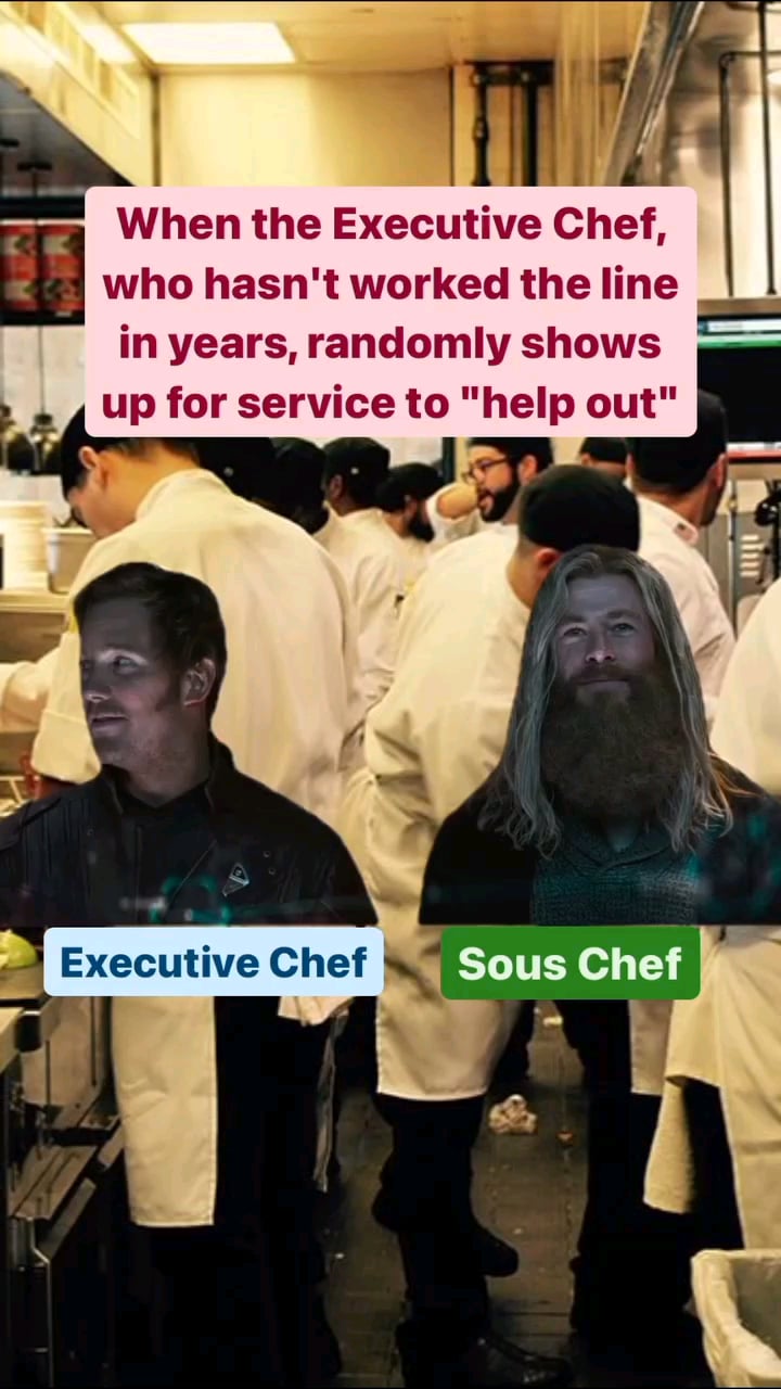 When the exec shows up at night to randomly rework every dish and plating infront of the Sous who only works breakfasts and was forced to work a night and was looking to you as the only consistent line cook on nights to get them up to speed.
