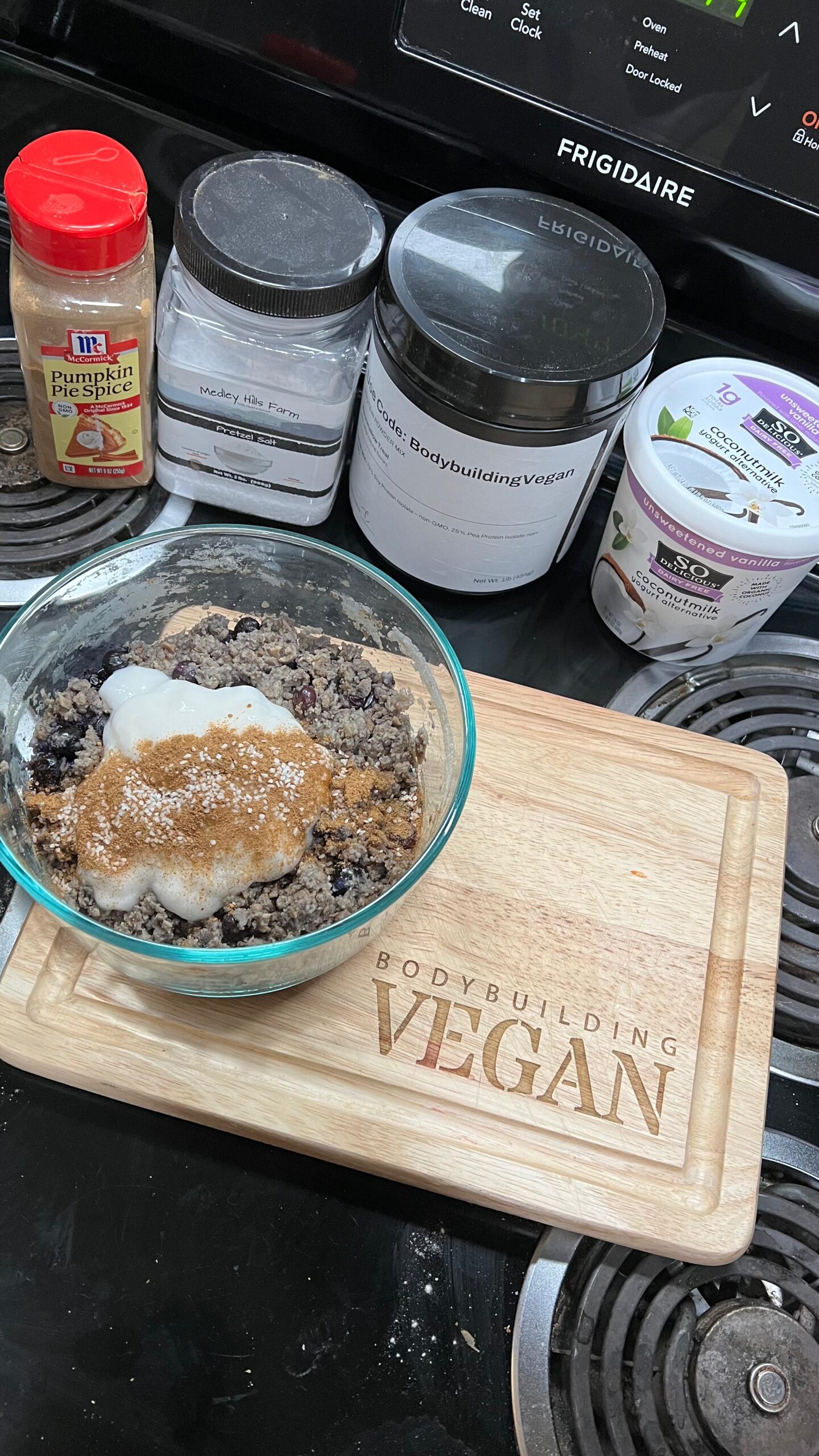 9. Stir the yogurt into the bowl to mix the flavors. If desired, add more cinnamon on top. Your TVP breakfast bowl is now ready to eat. Enjoy it hot with the creamy yogurt topping.