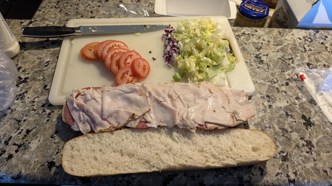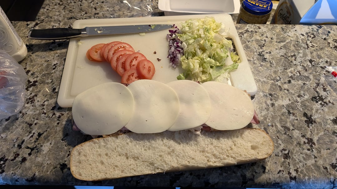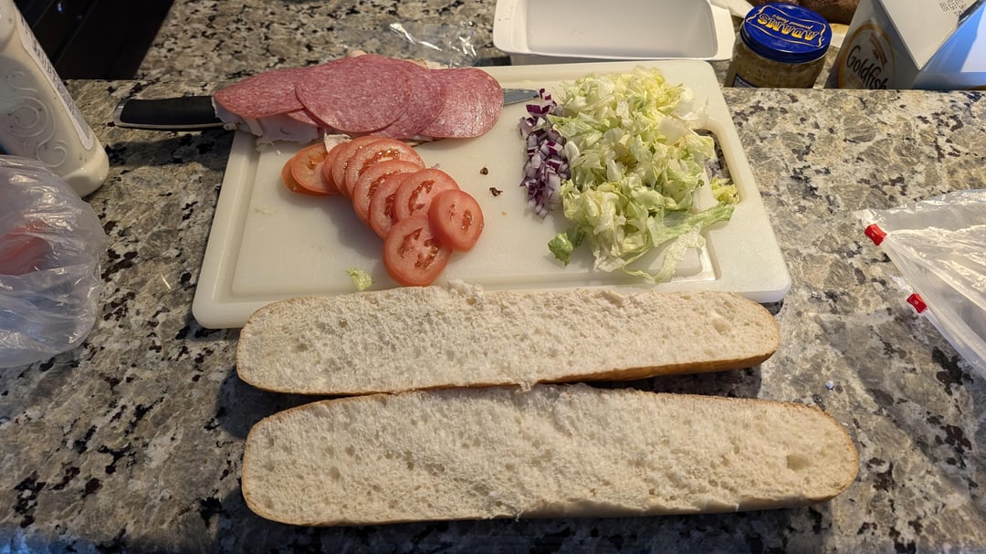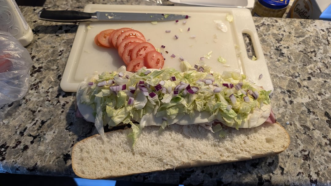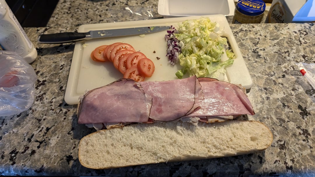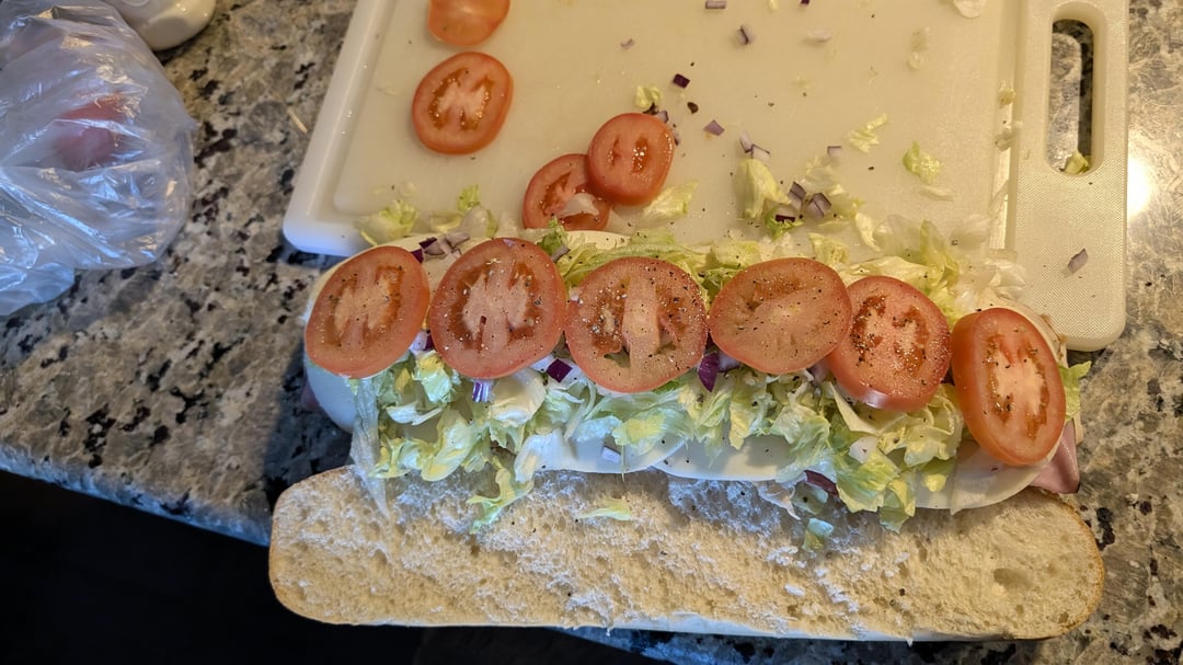 That’s a lot of thick sliced tomatoes that don’t look good to me (not your fault, most tomatoes I think are kinda bad) but in general an excellent put together sandwich I’d eat any day.