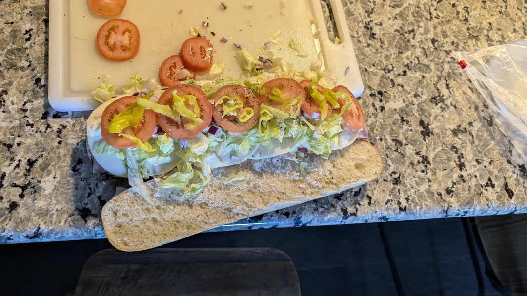 Basically just a big sandwich. I also added olive oil and red wine vinegar cause it wouldn't be the same without. Also as before all the veggies were grown from a friend's garden and freshly picked this morning 😁