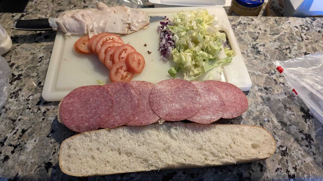 Similar to one I make, but substitute your turkey for large big pepperoni. Spicy capicola if I can find it. And sometimes banana peppers.