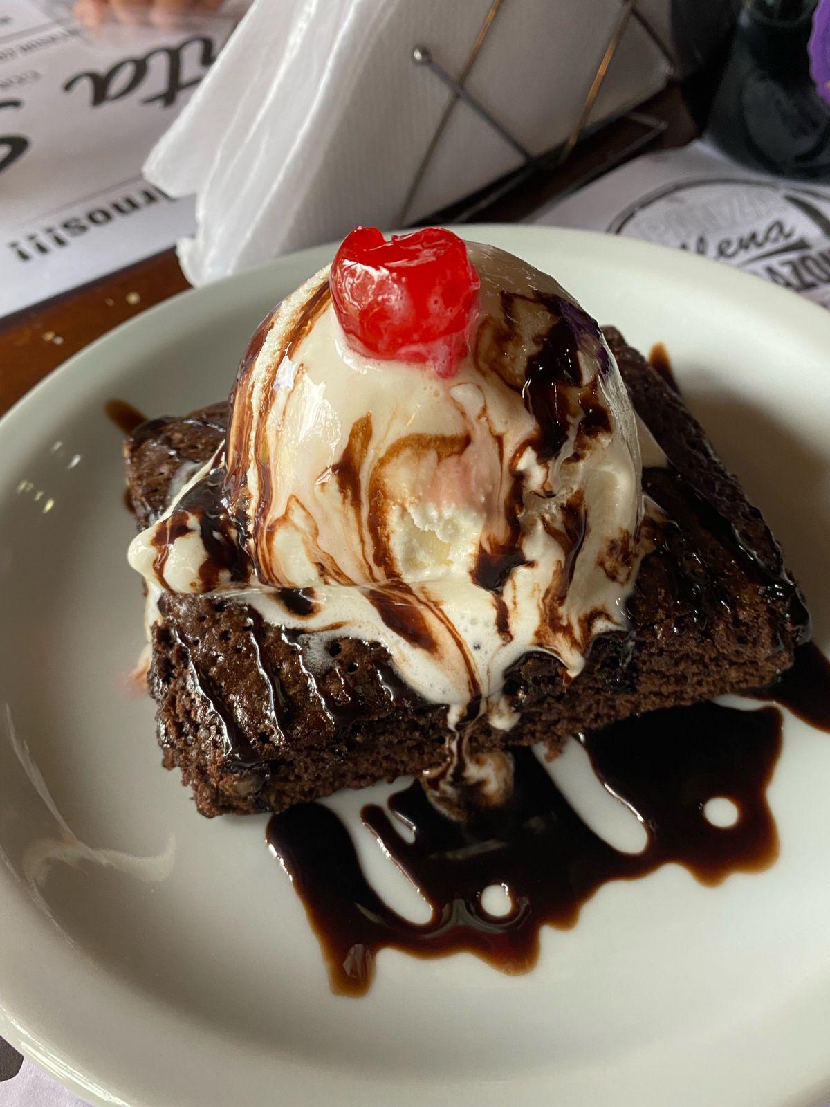 This is the best brownie with ice cream I had in my life, it was just done ! Burning hot and a soft cream ice cream 🤤 BROWNIE WAS SO MOIST omg im hungry rn 🙁