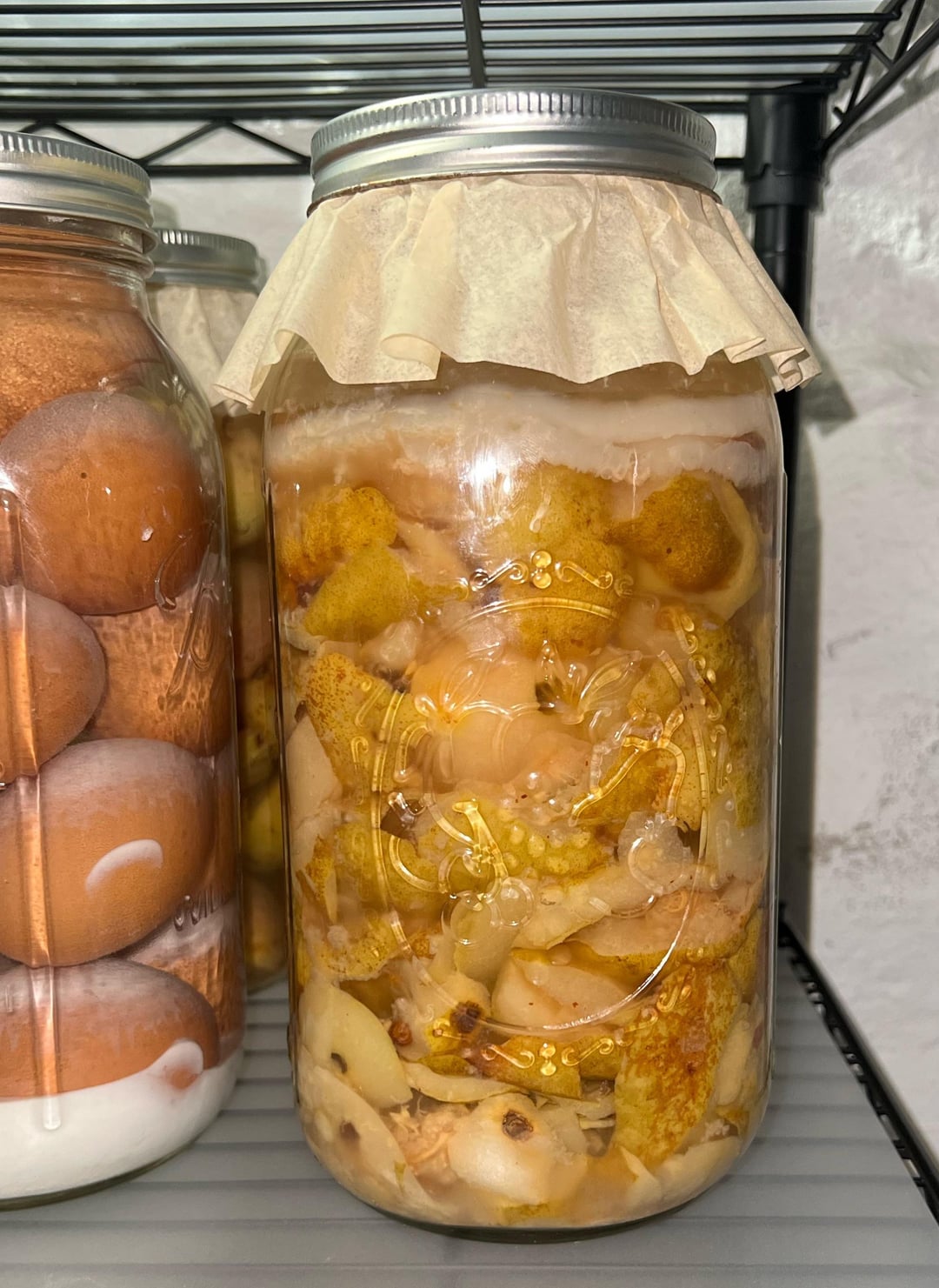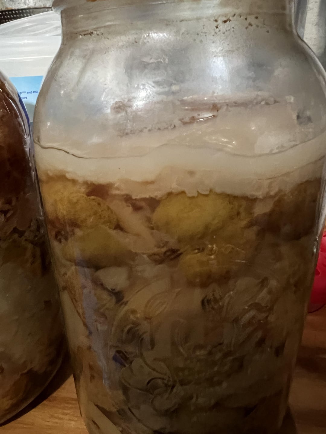 I have some jars of the beginnings of Pear cider vinegar. They are on week four and have formed this jelly like thick layer on the top. Is this the mother? I still haven’t removed the pear pieces, so when I go to remove them, do I just leave that in there, and just try to kind of scoop them out around it?