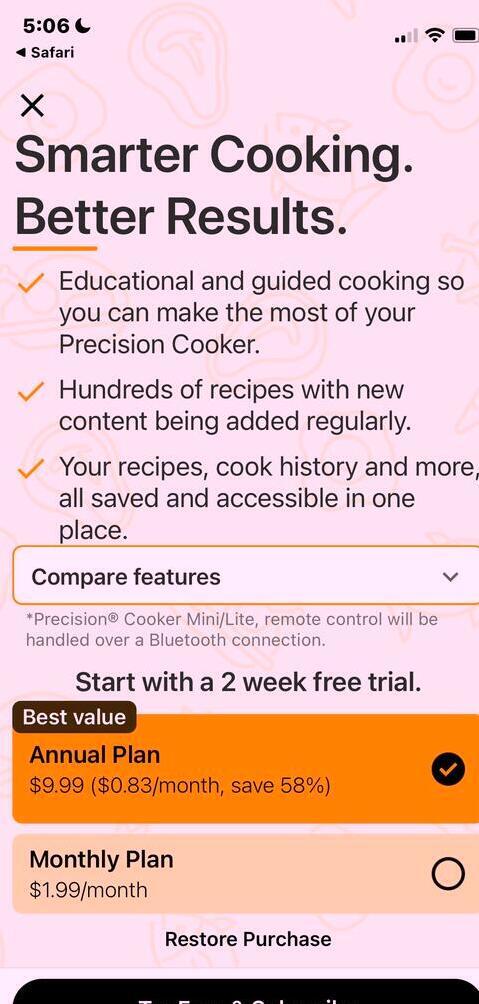 Tried to view a recipe in the Anova app and got this. WTF, I thought we were grandfathered in?by XimenaMendez960 3 Comments JoMa4 1 year ago You have to submit your email to get access. Just email support and they will send you the link. juliuspepperwoodchi 1 year ago You are, but you have to jump through hoops for it. ndjs22 1 year ago Direct copy of a post a week ago with some weird filter on the picture. Reposter.https://i.redd.it/nvibf7wn7kpd1.jpeghttps://www.reddit.com/r/sousvide/comments/1fjrawb/tried_to_view_a_recipe_in_the_anova_app_and_gotWrite A CommentYou must be logged in to post a comment.