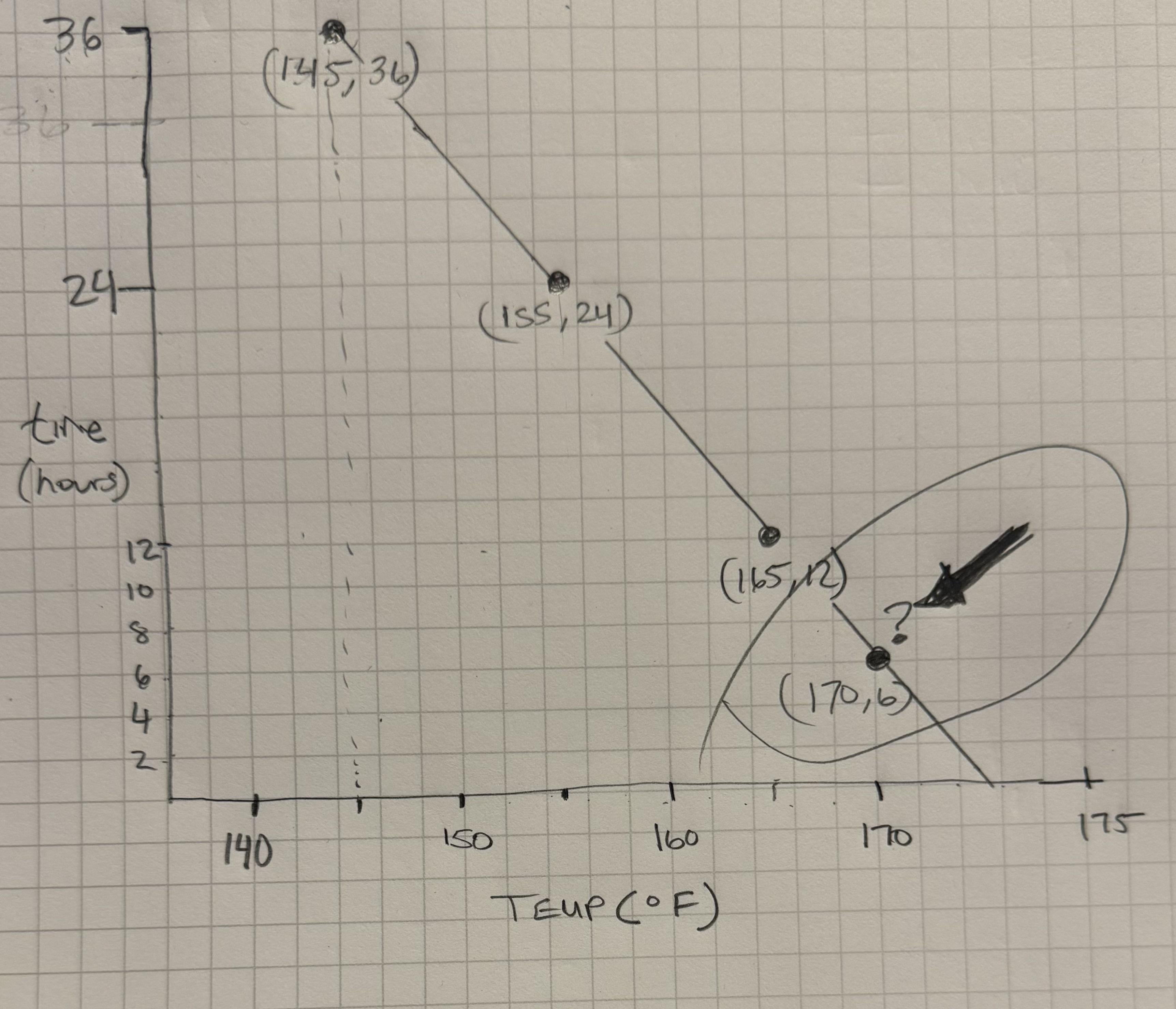 Interpolating the most common times/temps below doesn’t help me as I know it can’t be linear