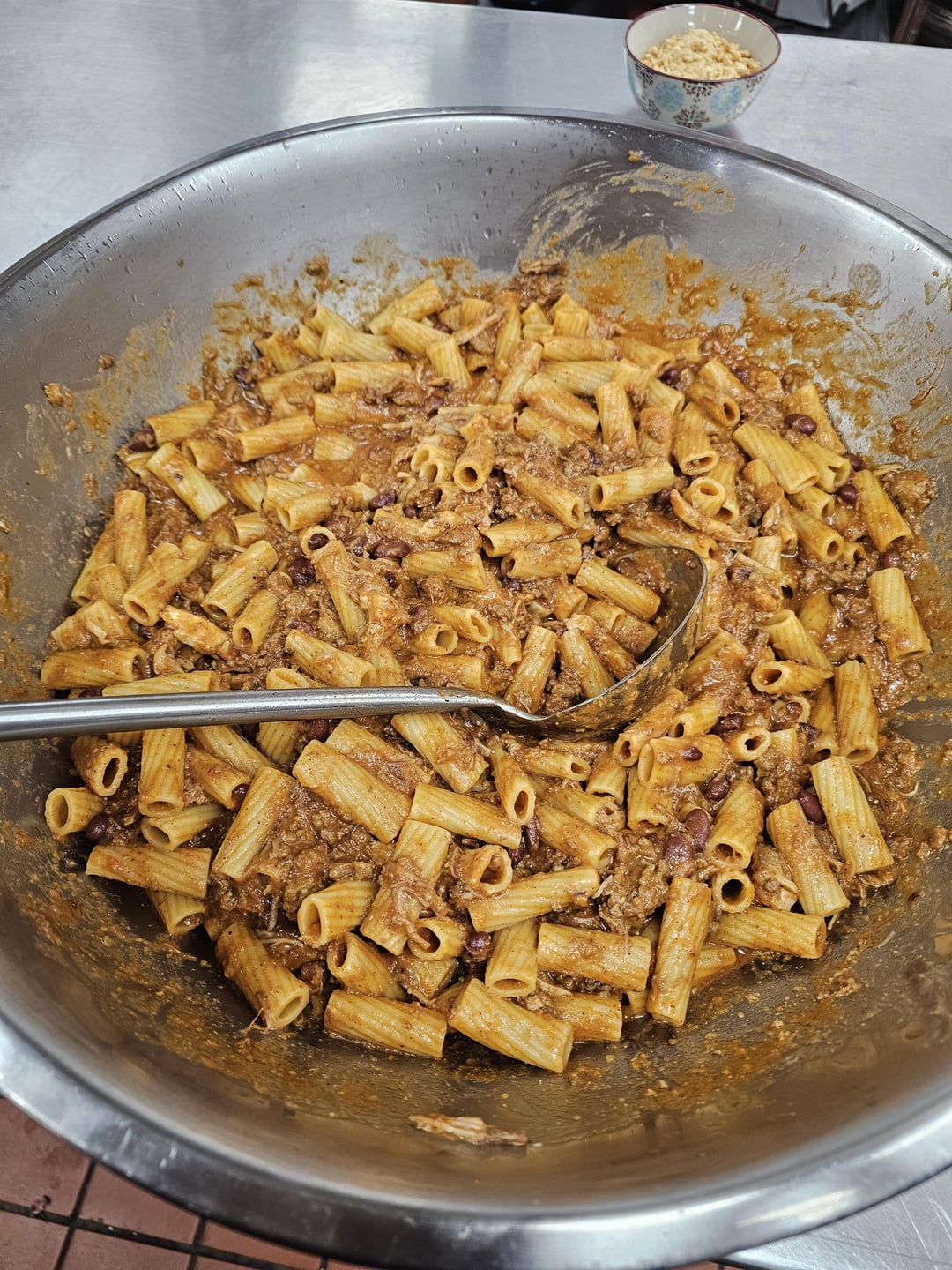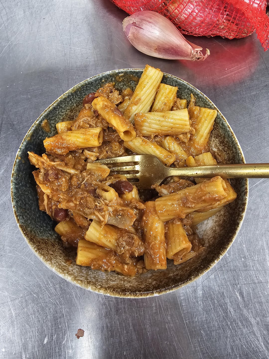 All the ingredients from the past 3 days family meals mixed into a sauce and thrown at the rigatoni.