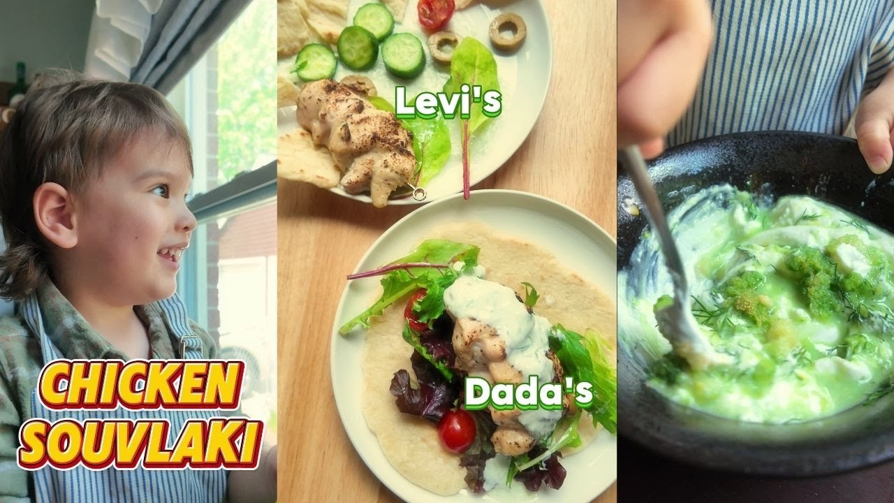 Levi makes chicken souvlaki from scratch with homemade pita and tzatziki sauce! He plates it his own special way! Which dish looks better? Dada’s or Levi’s?