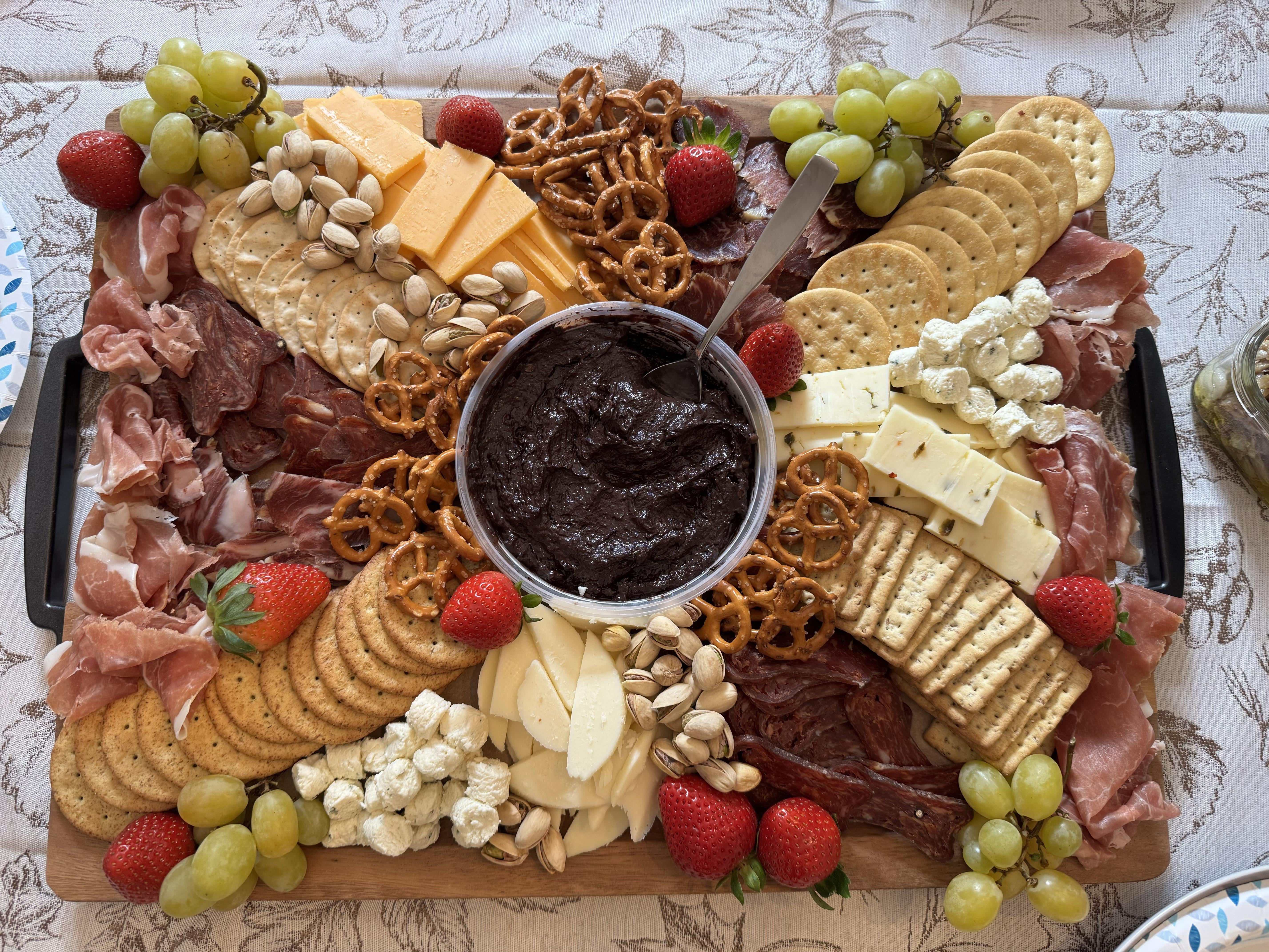 Target was such a hit for stuff for my charcuterie board. Pistachios, strawberries, pretzels, crackers, cheddar and pepper jack cheese, boursin cheese cubes, and delicious brownie batter hummus which was a 10/10.