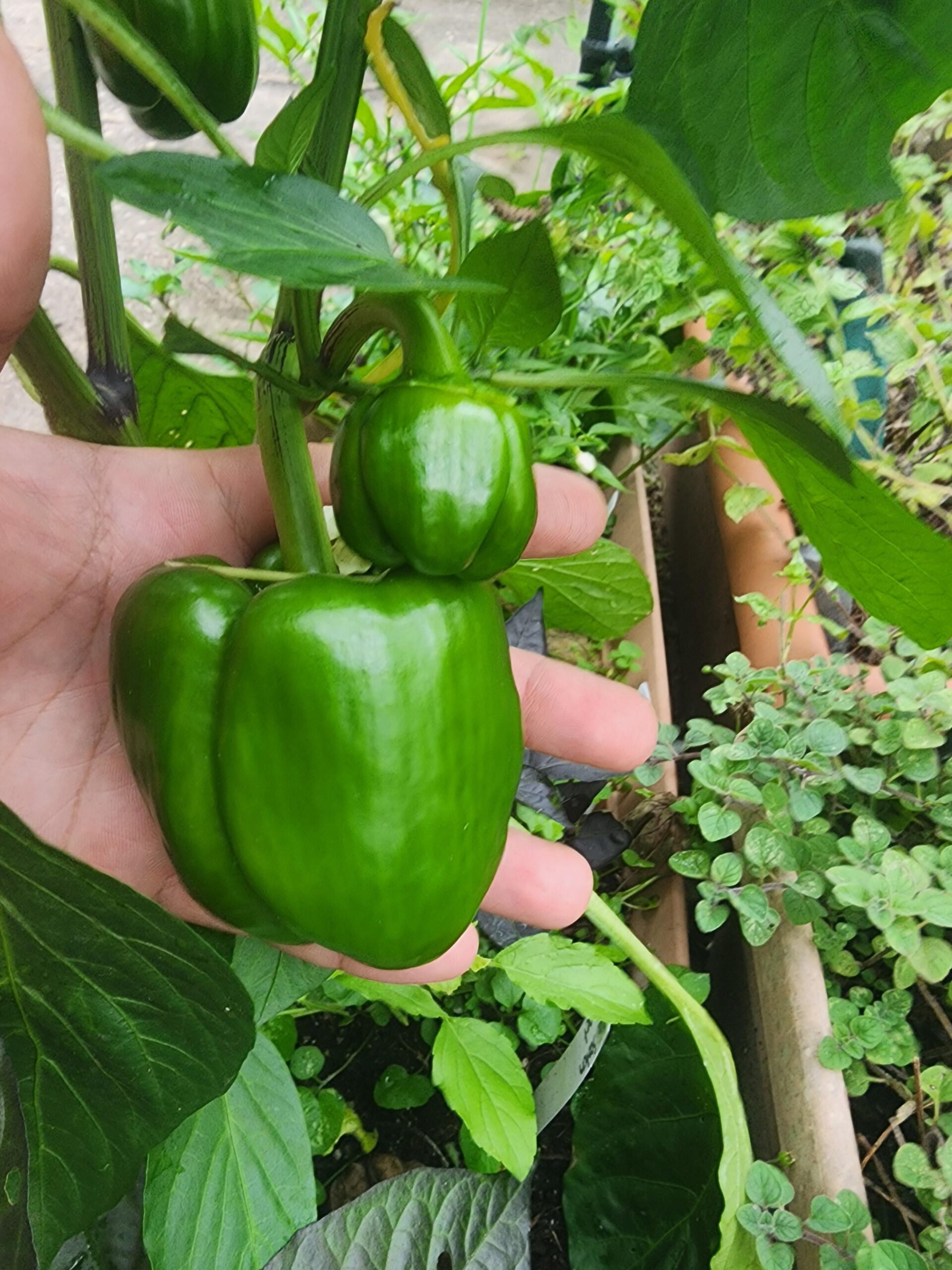 I'm curious if I have a mutant pepper or if I mixed up my seeds somehow. This is what I have labeled as a red scotch bonnet plant. All the other peppers are like an inch in diameter except this one that's the size of a small apple. It's like 3 inches in diameter and I'm thoroughly stumped…