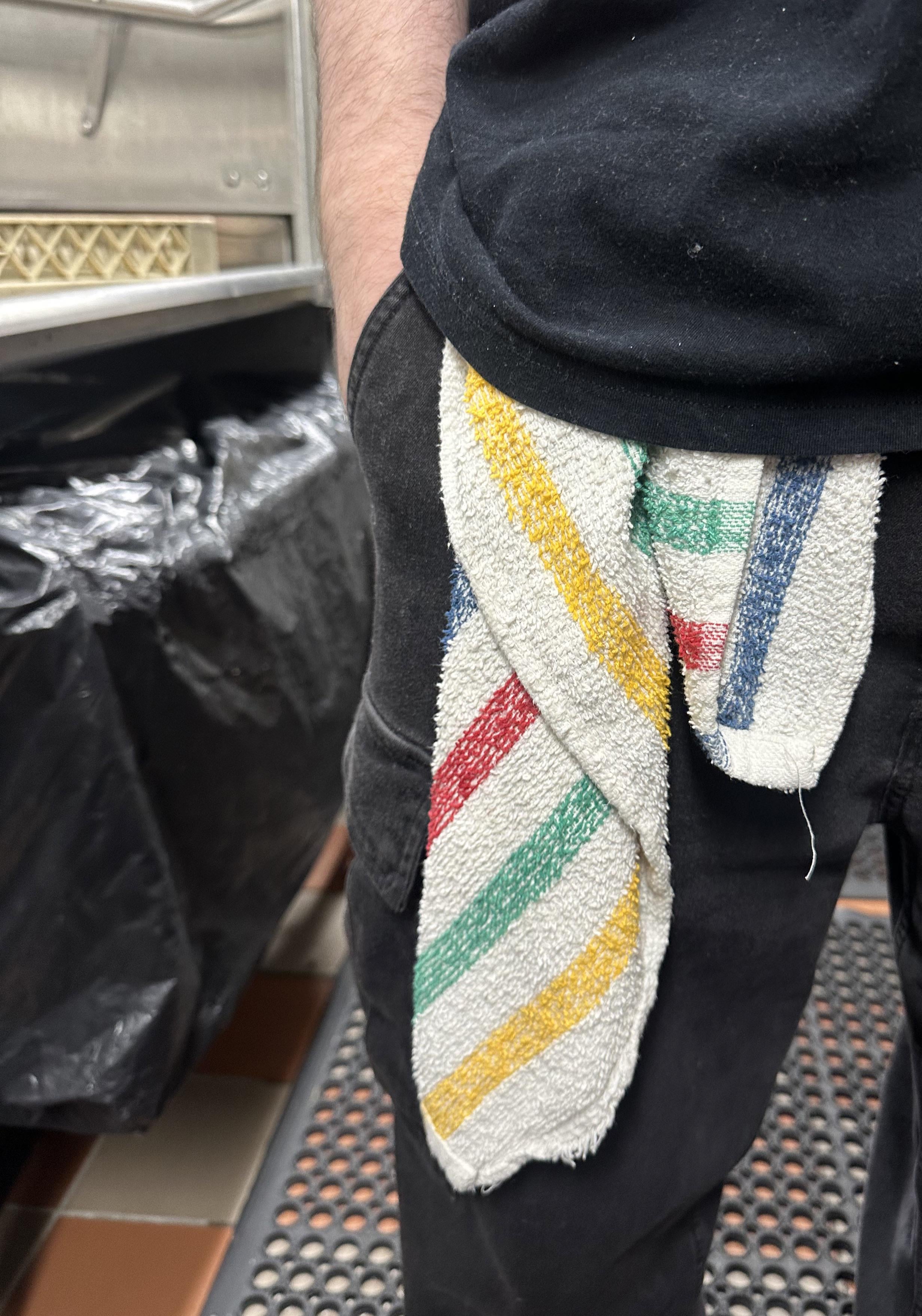 I have close to 50 towels that I’ve taken from various kitchens. Everyone always got the standard blue stripe, but occasionally an orange or red or blue/green or green etc. would slip in. And then they would slip into my bag. I’ve never seen one of these. I would literally buy it off you