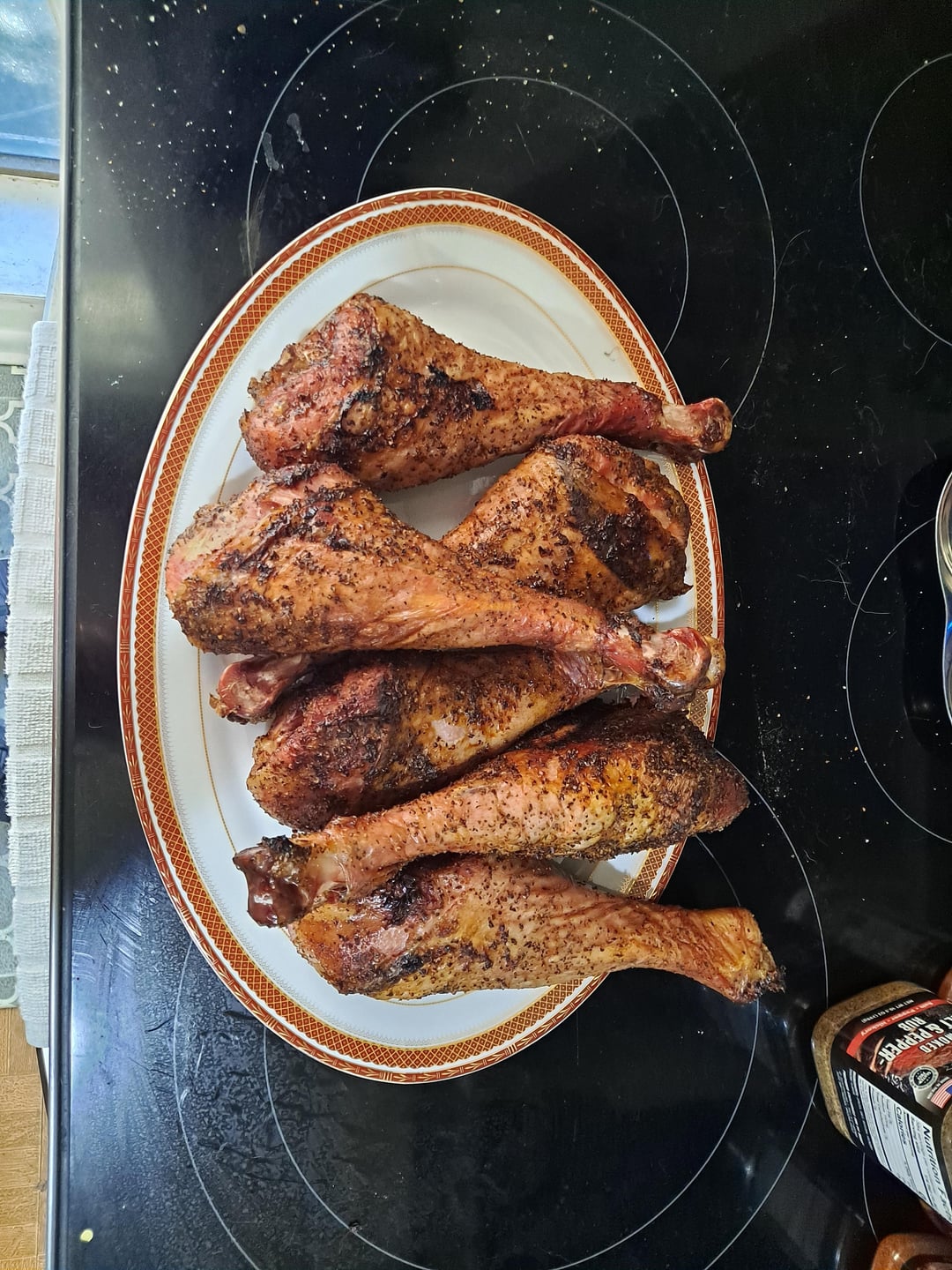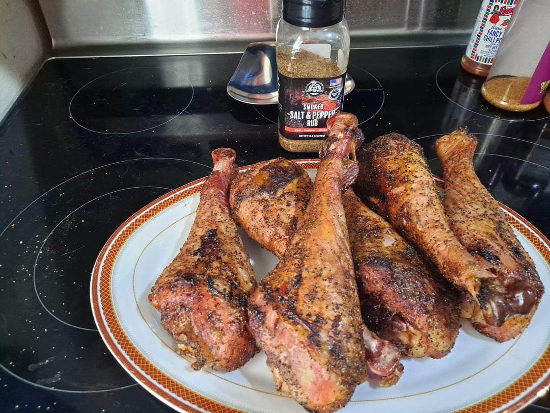 I did turkey legs today. Brined for about 16 hours then smoked for 3 hours. I used a very pepper forward rub, I would not use this for turkey legs again. You can see the rub I used in the second picture.by Steven_camaro 1 Comment willshade145 1 year ago Those look great and brining is the way to go!Write A CommentYou must be logged in to post a comment.